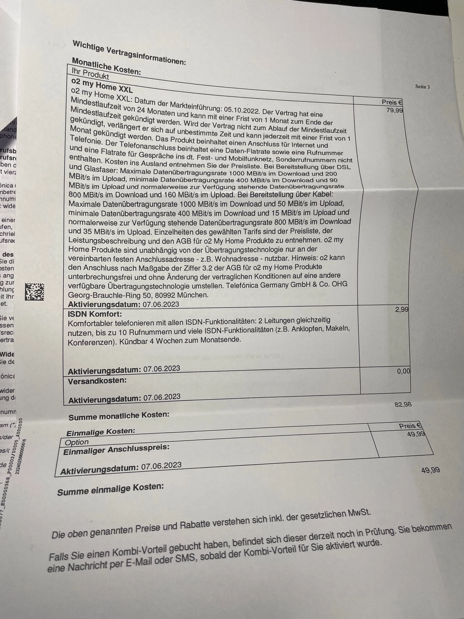 dass Schreiben, welches du nachträglich noch bekommen hast, berücksichtigt in der Auflistung scheinbar nicht den Technologierabatt, der 40 Euro betragen wird. Wenn auch mit der Aktivierung deines Anschlusses dieser nicht ersichtlich ist, dann schreibe uns hier bitte wieder und wir buchen den nachträglich hinzu. Auch wenn das Schreiben jetzt nicht gerade Hilfreich ist, können wir aber in der Regel davon ausgehen, dass die Buchung automatisch stattfinden wird.