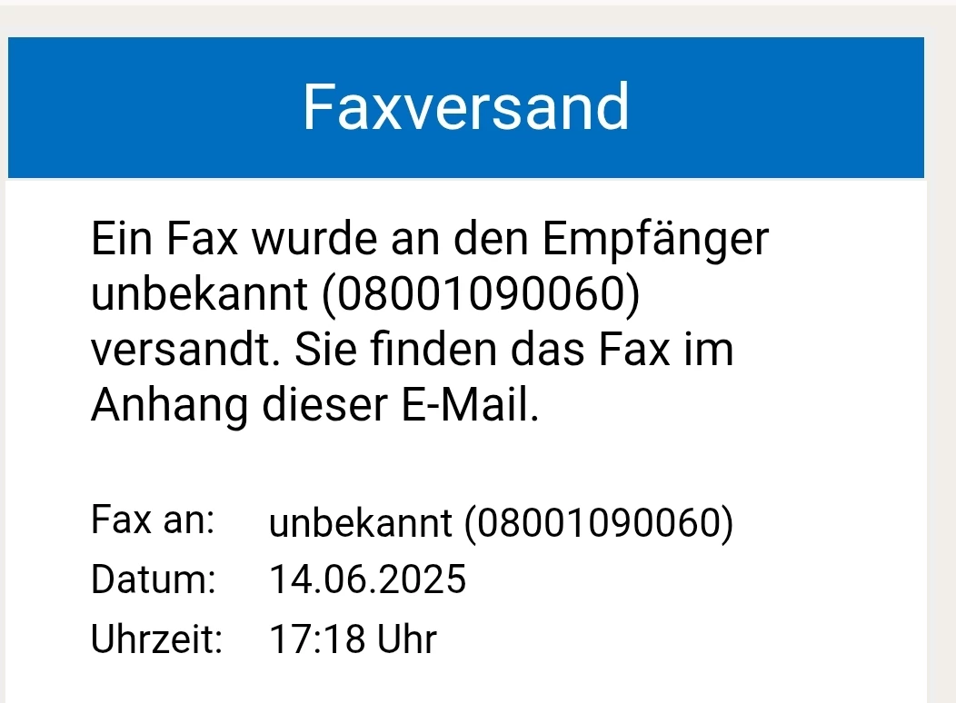 ich habe jetzt nochmal ein ax versendet. Diesmal habe ich das Dokument von pdf zu jpeg umgewandelt. Wollt ihr bitte nochmal eure Faxprotokolle/Eingänge testen?