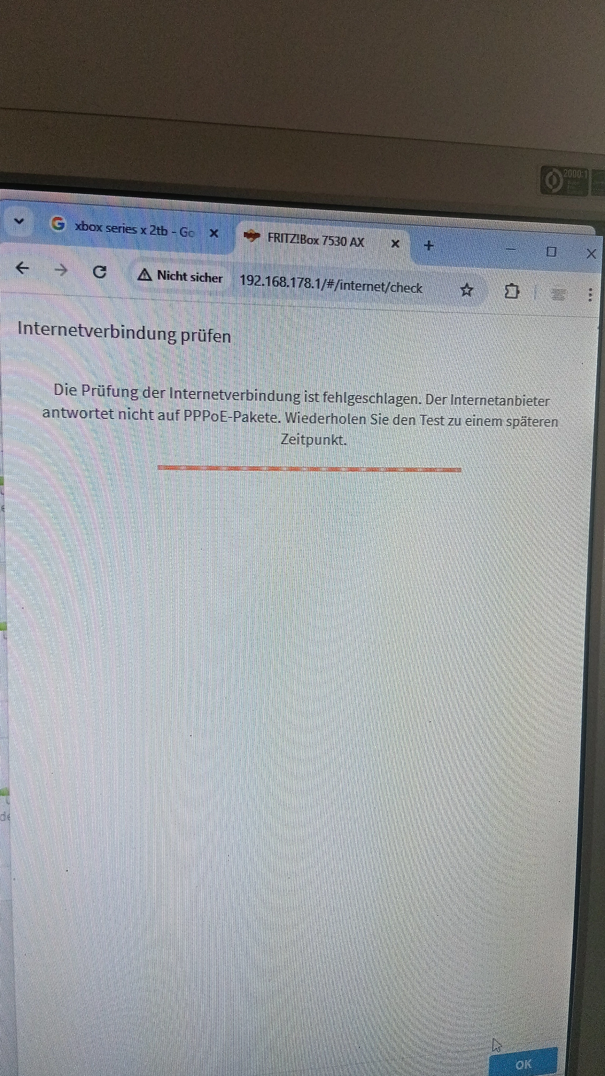 Hallo habe seid 22:30 diesen Fehler was kann ich tun router schon neugestartet und resetet