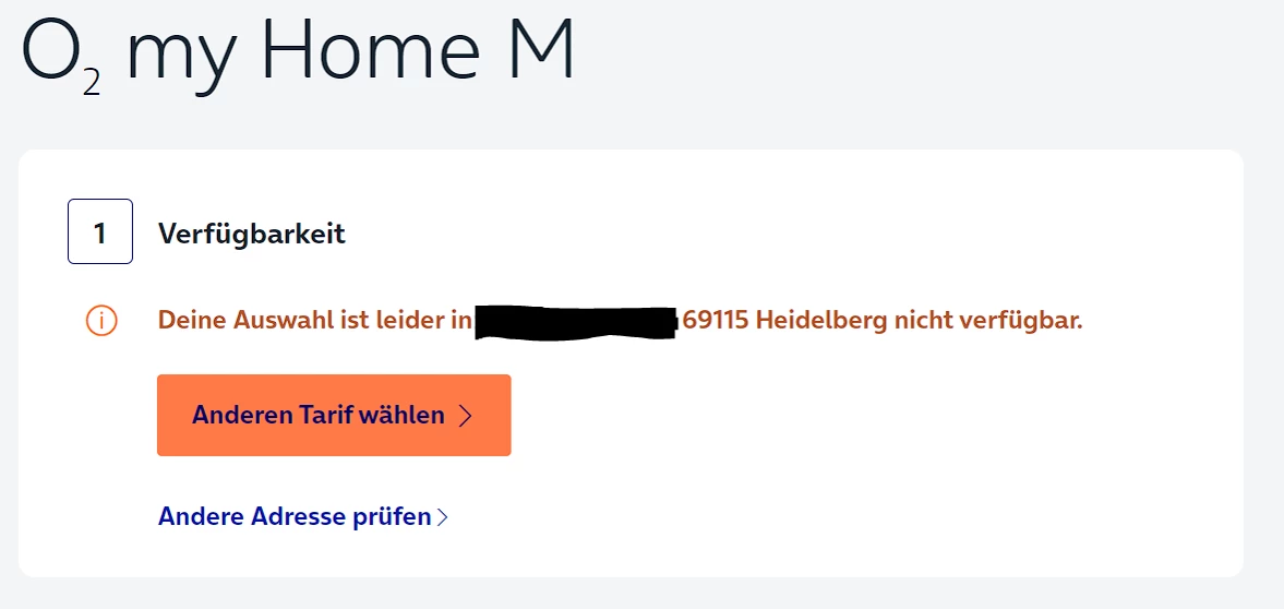 Ich habe über die letzten Wochen immer wieder Preise verglichen und mehrfach geprüft was an meiner Adresse verfügbar ist und was es mich kosten würde. Immer wurde mir auch der O2 my Home via 5G an meiner Adresse angeboten (sonst hätte ich die Frage oben nicht gestellt). Jetzt soll er aber plötzlich nicht mehr verfügbar sein.