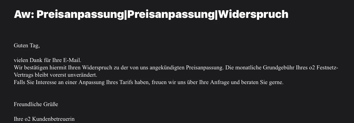 Ich kenne ein Dutzend Kunden die in den letzten Wochen eine *Preisanpassung* bekommen haben. Allen wurde ein Widerspruch eingeräumt und haben das auch getan. Dem wurde entsprochen.