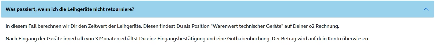 Unterbleibt die Rücksendung, so wird o2 den Warenwert des Geräts als Schadensersatz in Rechnung stellen.