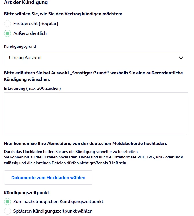 Hattest du bereits eine Kündigung mit dem Grund Umzug ins Ausland an uns gerichtet?