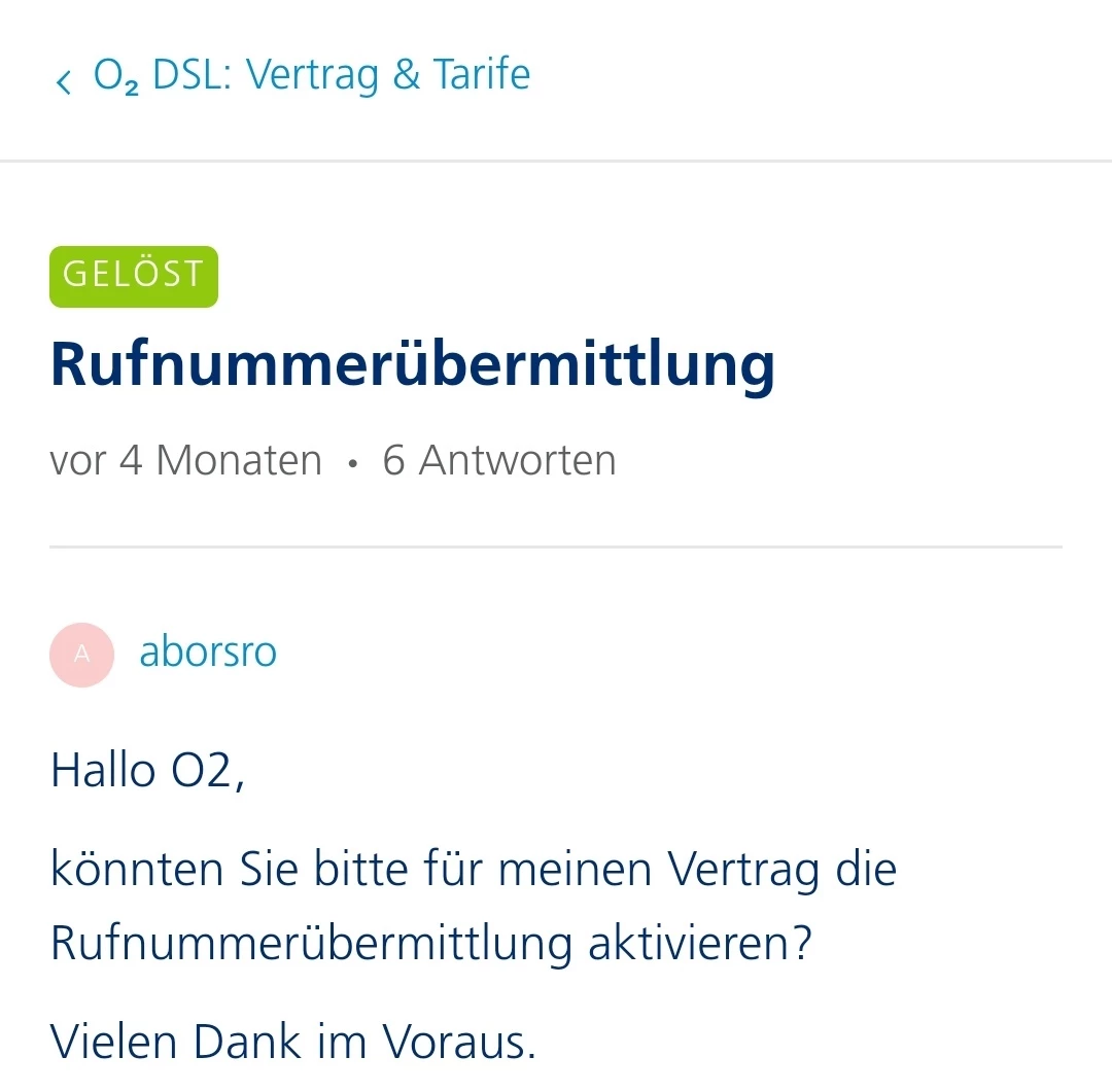 könntet ihr bei mir die Rufnummerübermittlung ebenfalls aktivieren? Nervig die die, die ich anrufen möchte.