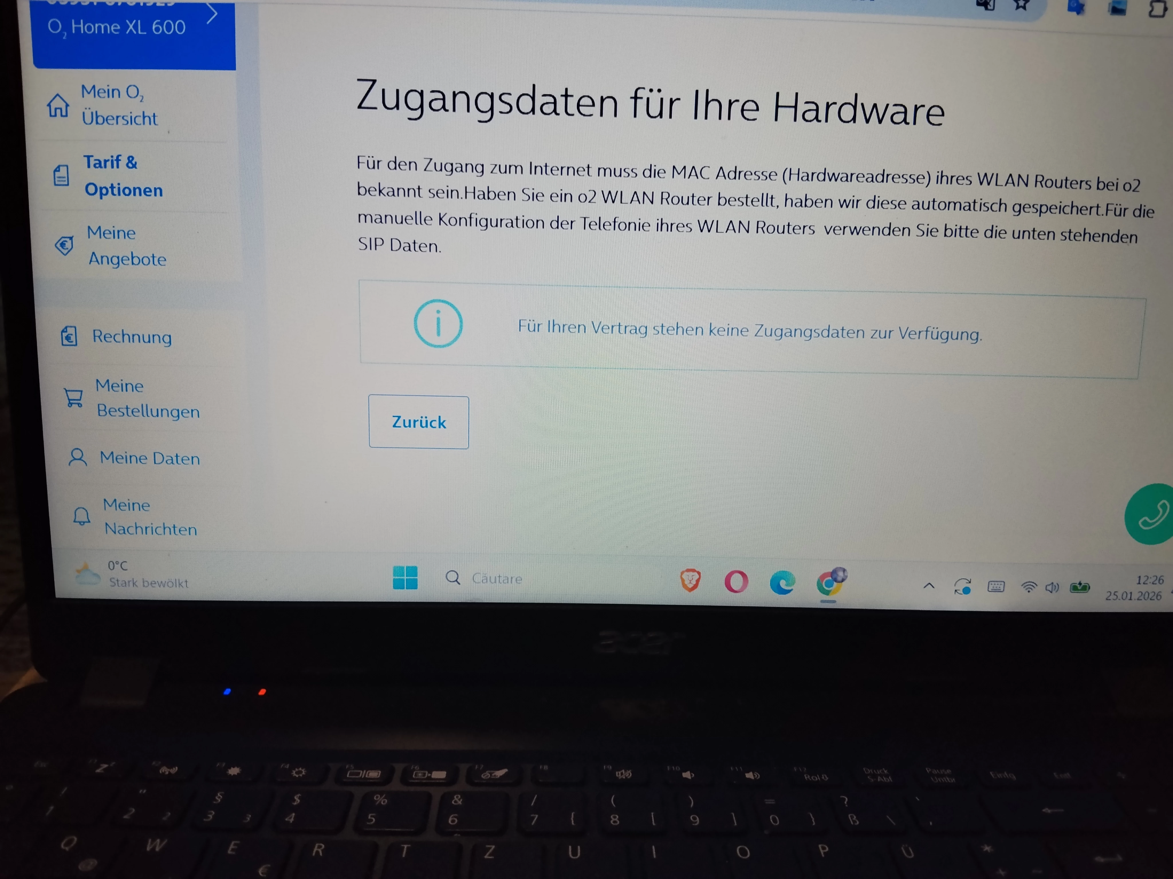 Für Ihren Vertrag stehen keine Zugangsdaten zur Verfügung.