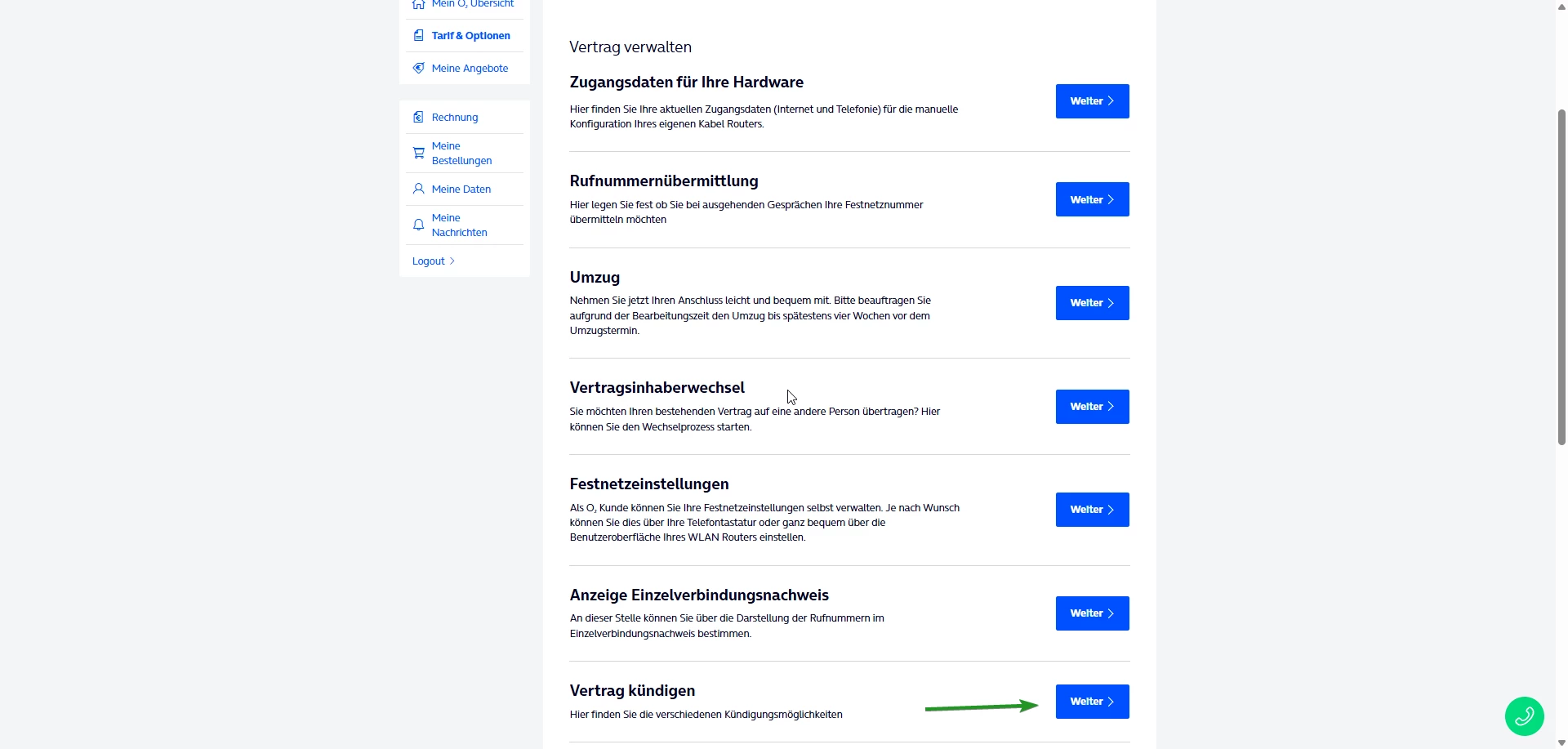 Kündigungsoptionen über eine Kundenverwaltung sind nicht geregelt.