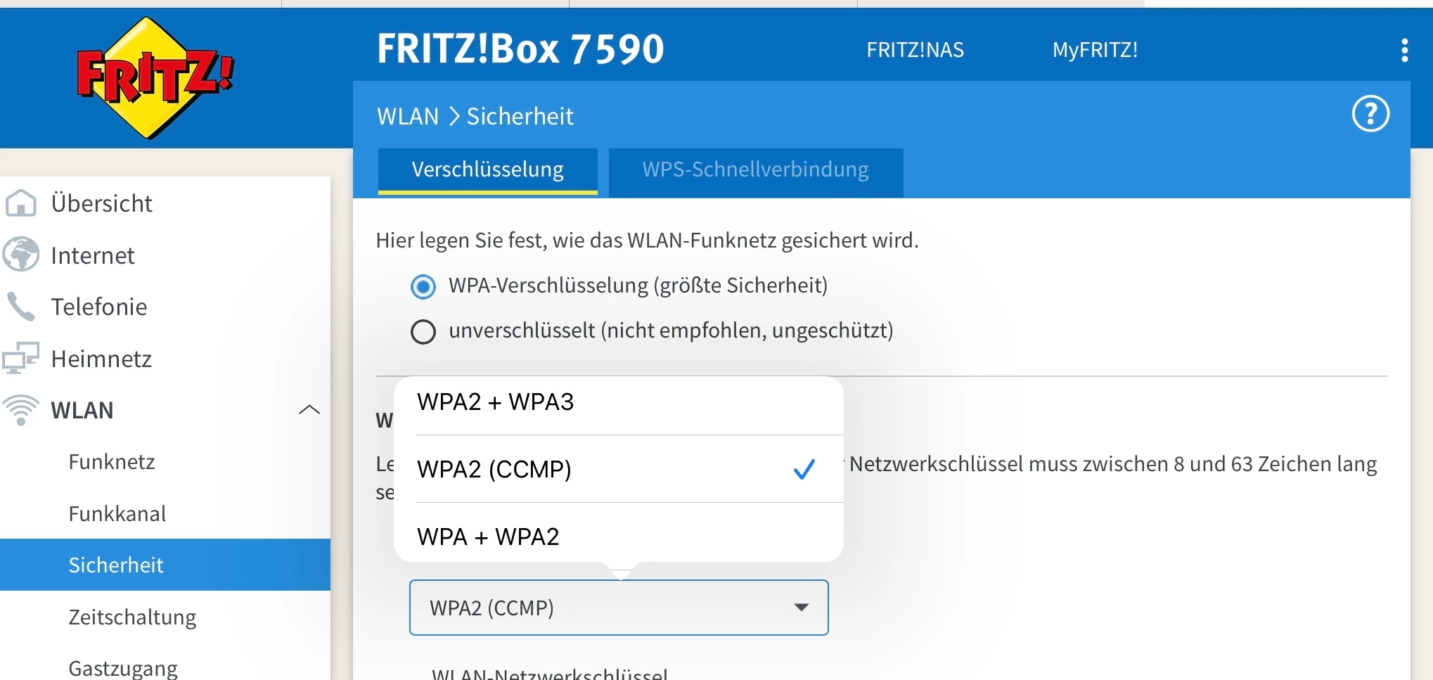 richtig, die Box lief im WPA2+WPA3 Mischmodus