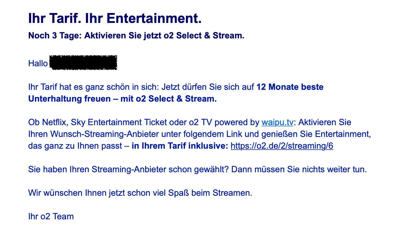 Select and stream Aktivierung läuft seit über 3 Wochen ab und keine Antwort von O2
