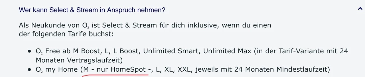 @Vilureef hat da völlig recht. o2 Select & Stream bieten wir bei DSL erst ab dem Tarif “o2 My Home L” an.