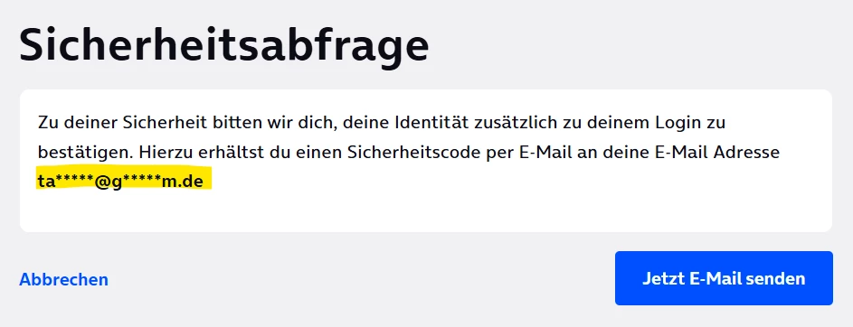 Sicherheitsabfrage, E-Mail-Adresse für Sicherheitscode ändern