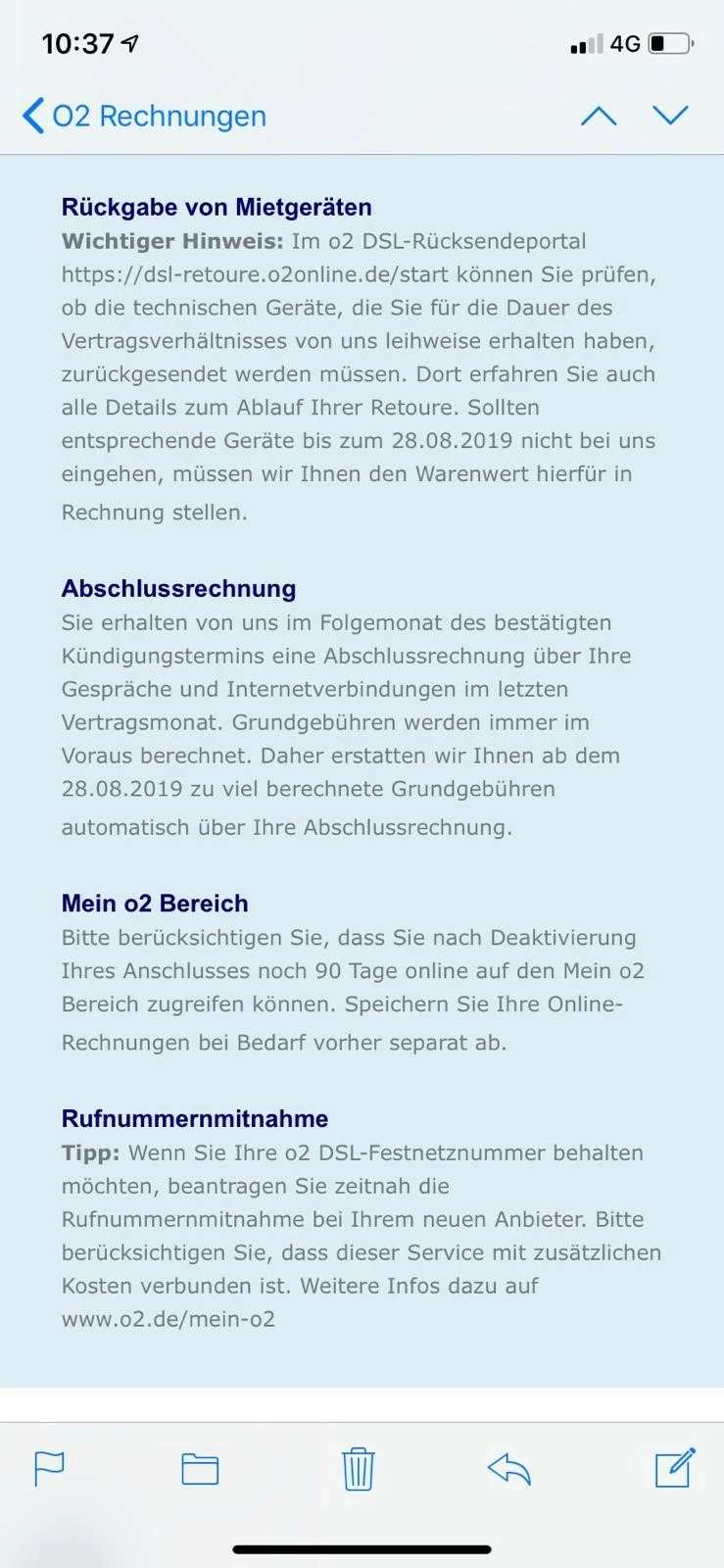 Haben dies mit dem bestehenden Vertrag, Ummeldung usw. an O2 geschickt, welche auch sofort gesagt haben kein Problem und uns direkt eine Sonderkündigungsbestätigung mit dem Kündigungstermin Ende August. Also dachten wir perfekt ist ja ein super Service !