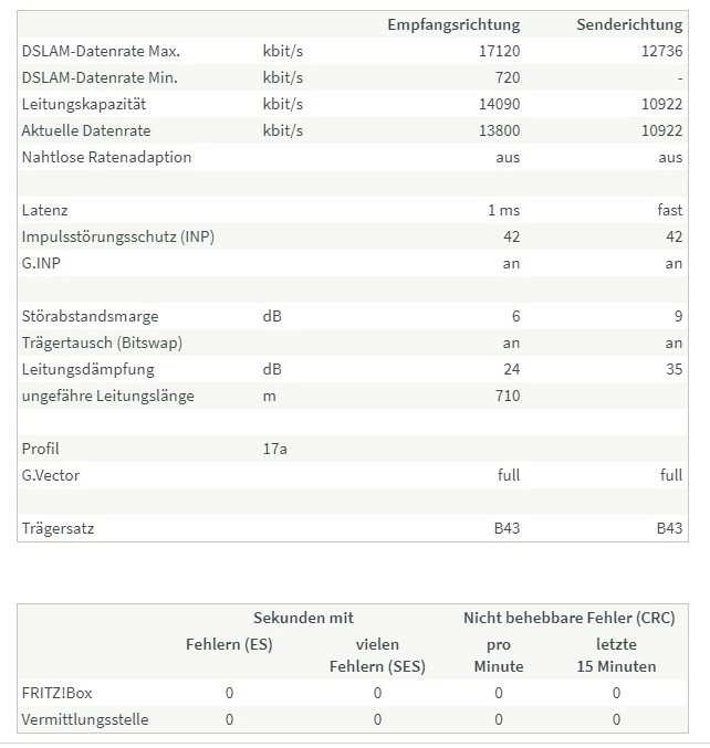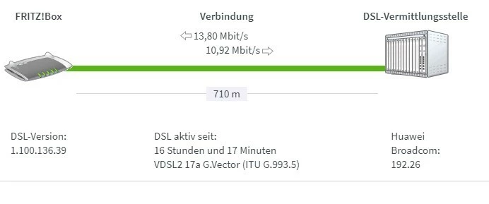 Die Fritzbox meldet aber 710 Meter, das bestätigte mir auch der Techniker, als er mir sein Messgerät gezeigt hat.