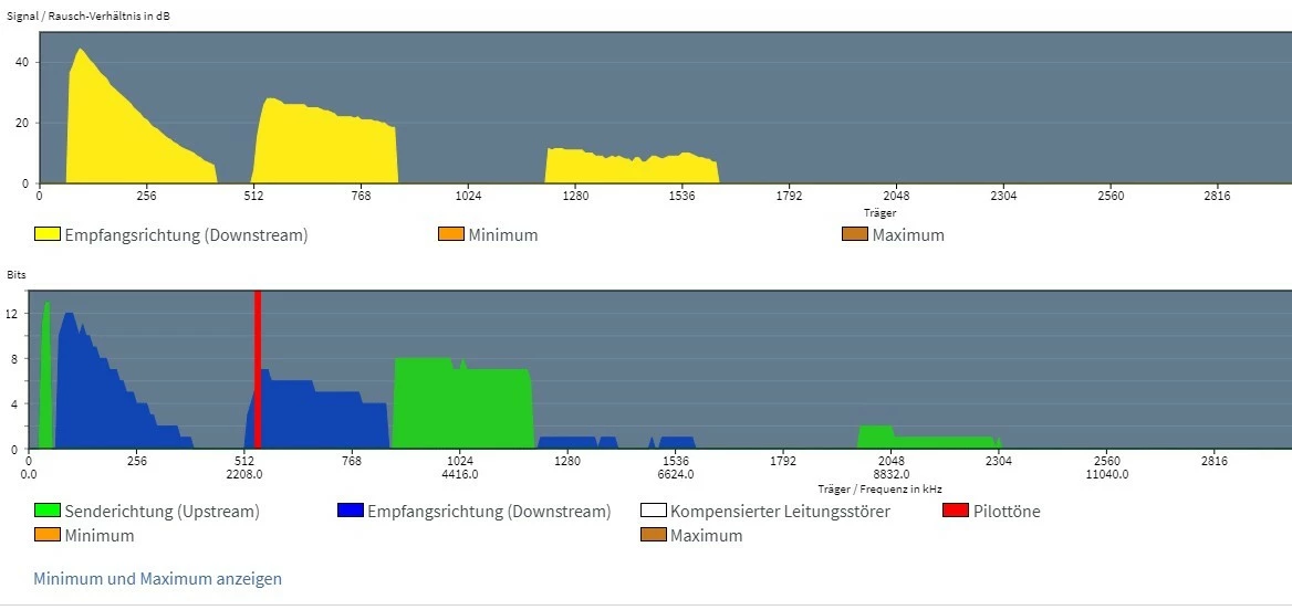 Poste doch bitte auch einen Screenshot der DSL-Tabelle und des Spektrums. Diese liefern mehr Infos und können der Fehleranalyse dienlich sein.