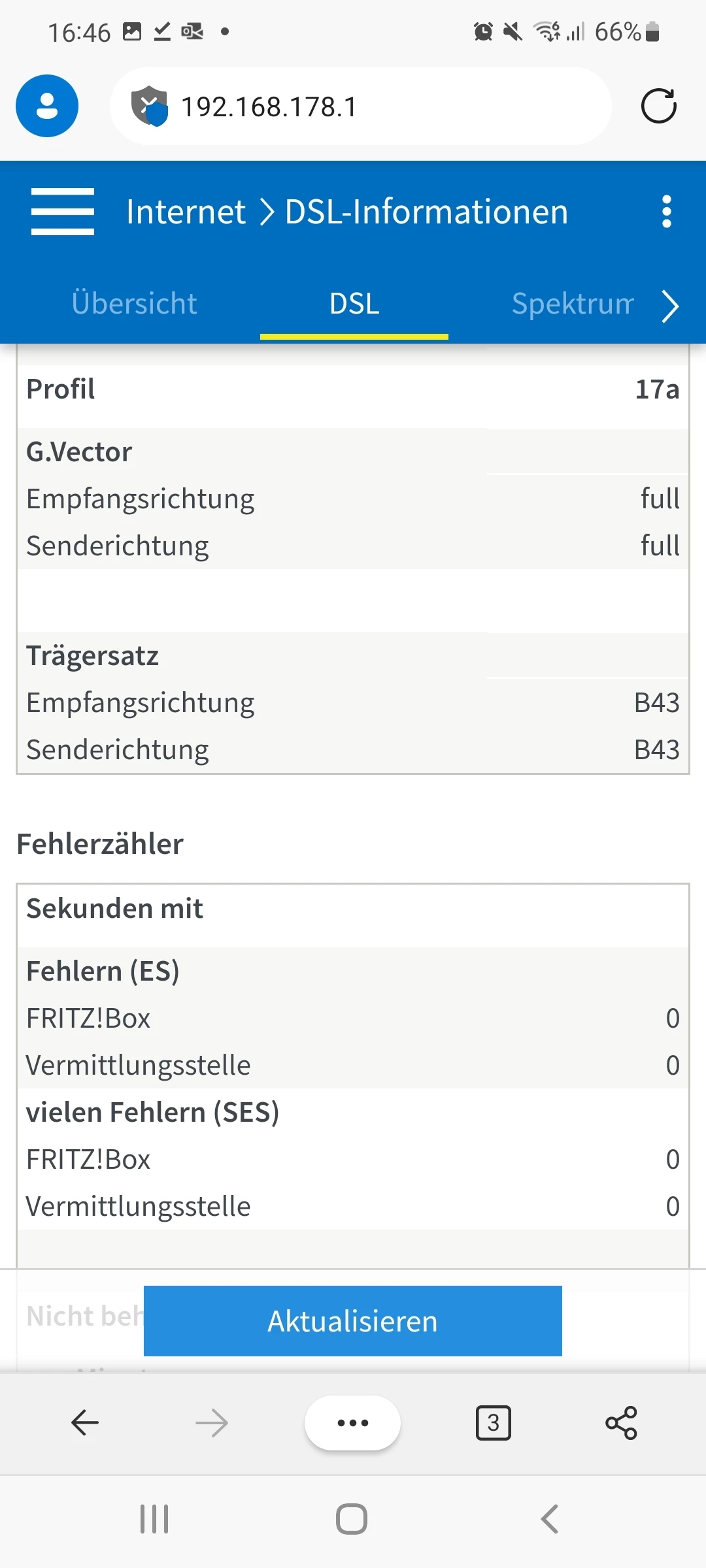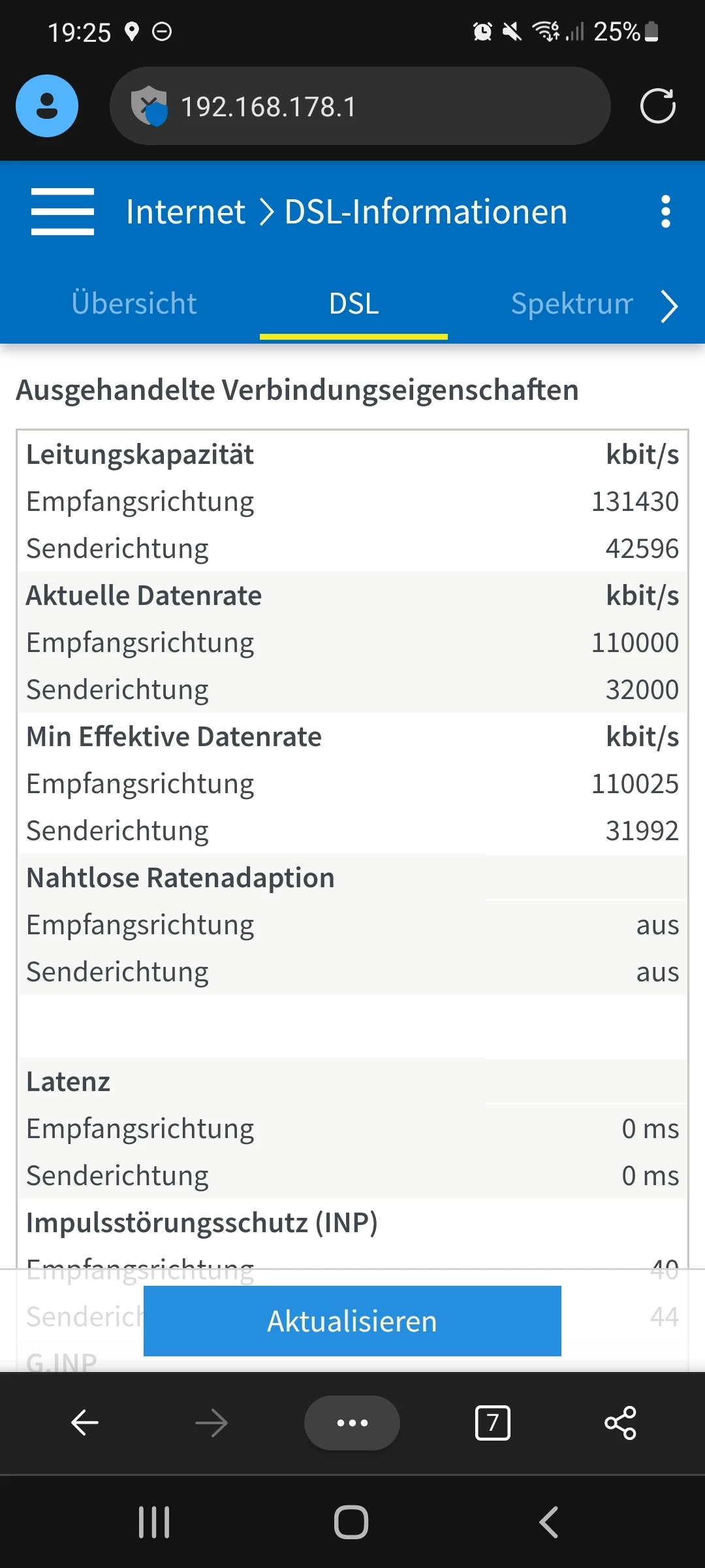 Poste bitte einen Screenshot der Tabelle “DSL” unter “DSL-Informationen” mit allen Leitungswerten und Fehlerzählern. Ggf. mehrere Screenshots erstellen.