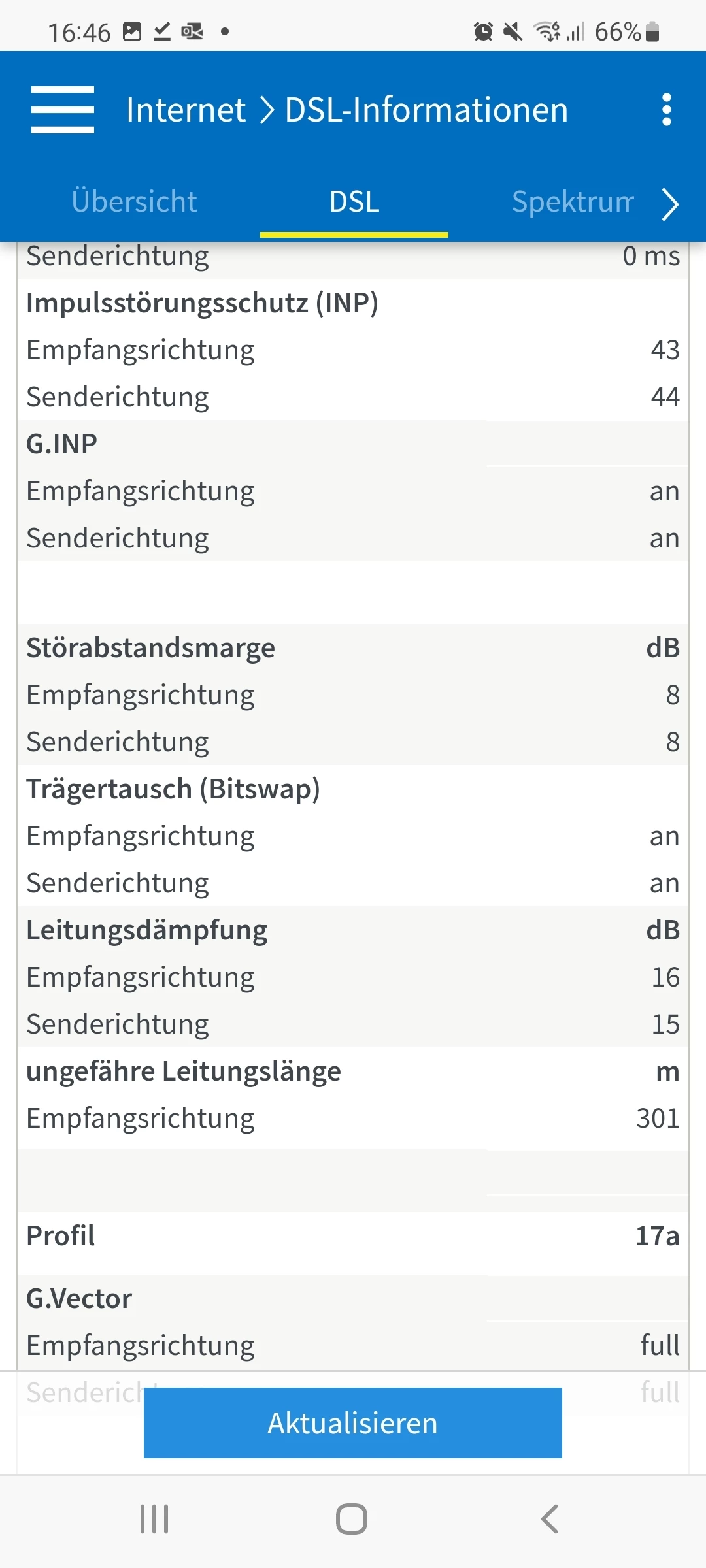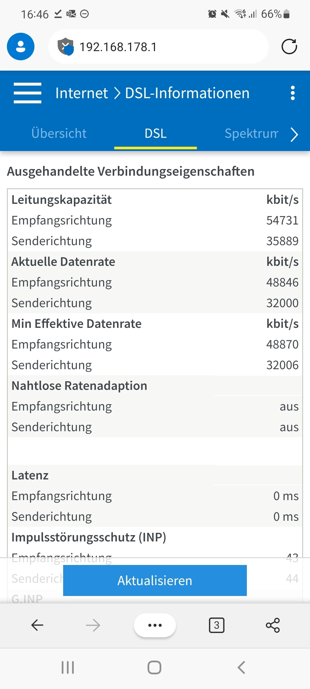 Könntest Du bitte erneut einen Screenshot aus der Fritzbox von den verhandelten Verbindungseigenschaften posten? Die müssen sich massiv verbessert haben zu deinen letzten Screenshots. (War damals der letzte Screenshot aus der Fritzbox)