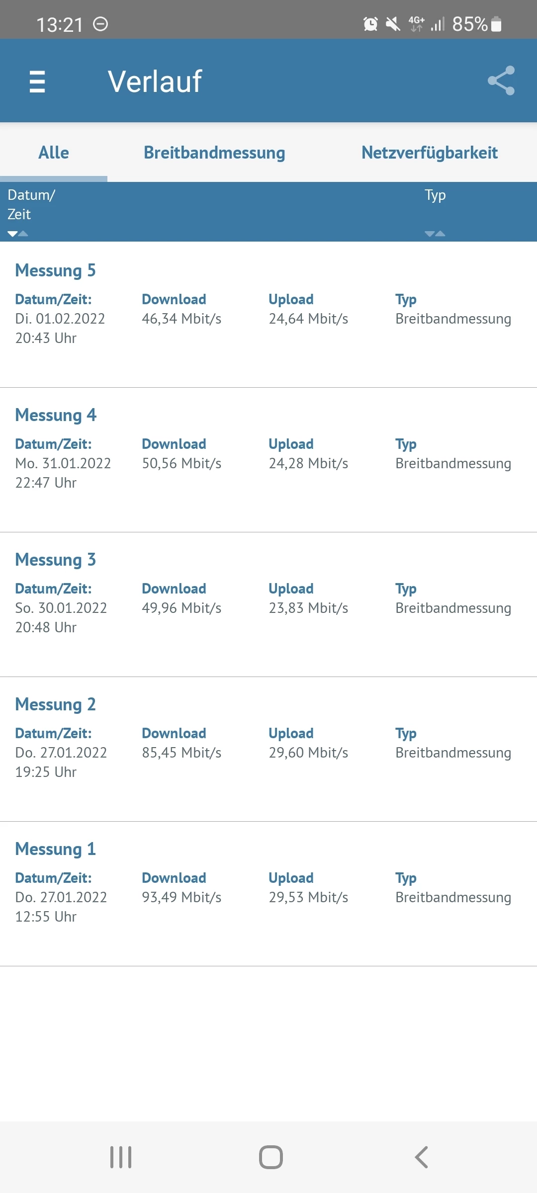 Ich verstehe die Daten des Screenshots nicht wirklich. Deswegen ist mir da kein Problem aufgefallen. Ich prüfe die Leidtung über die App der Bundesnetzagentur. Hier die Daten von heute mittag: