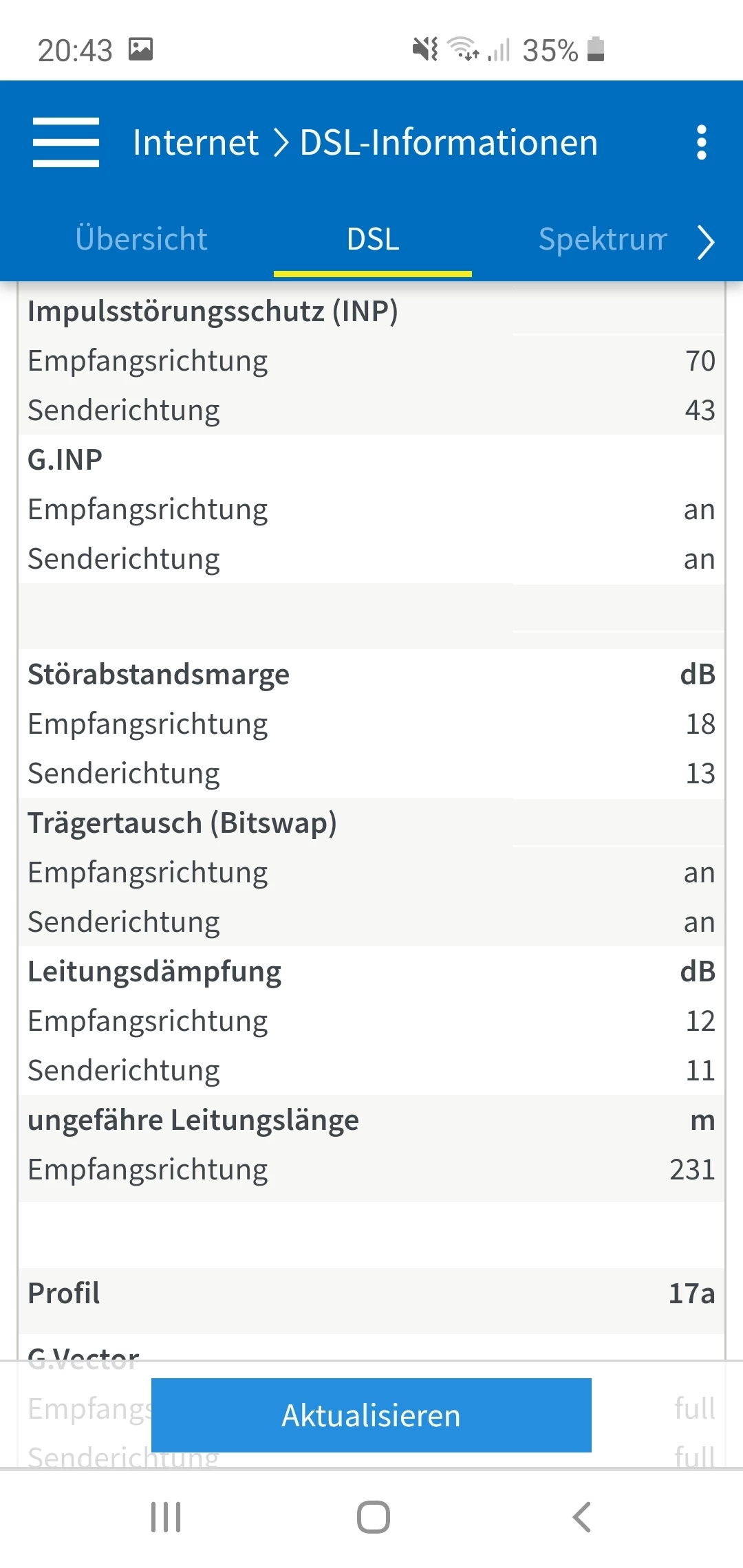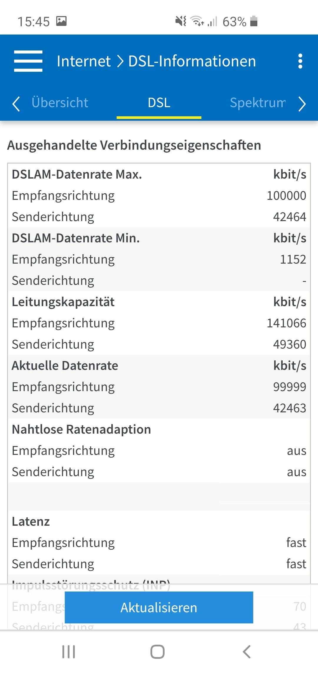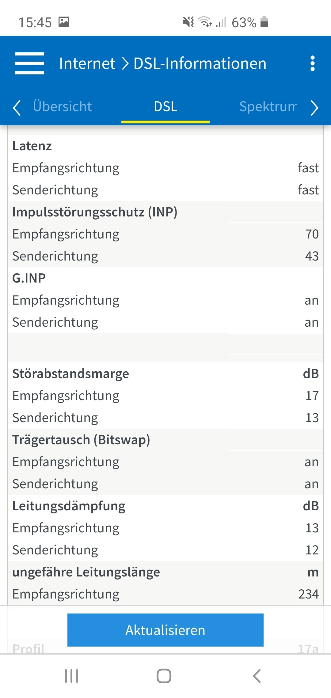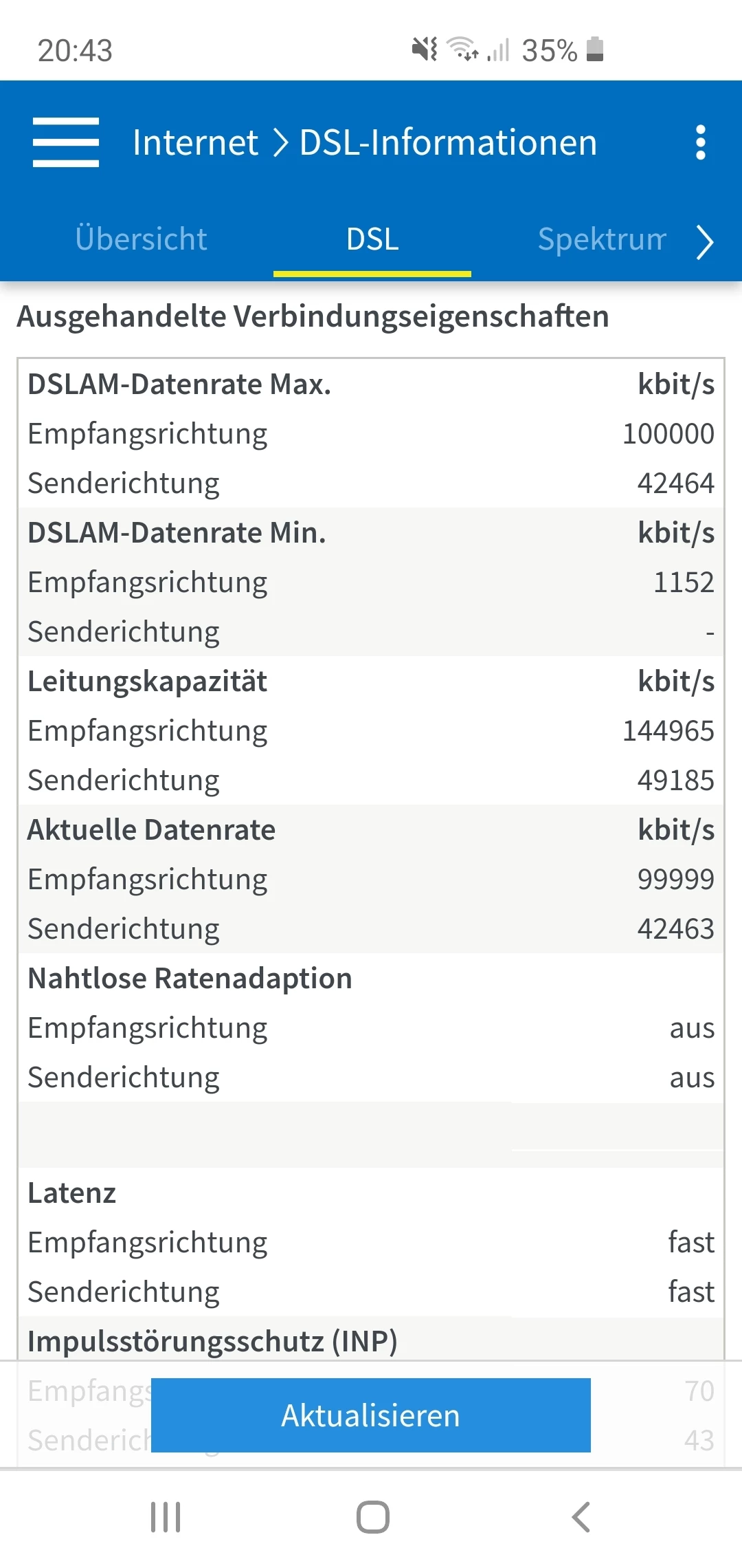 Wie sind denn nun die Leitungswerte? Kannst du mal einen aktuellen Screenshot der Tabelle unter “DSL” posten?