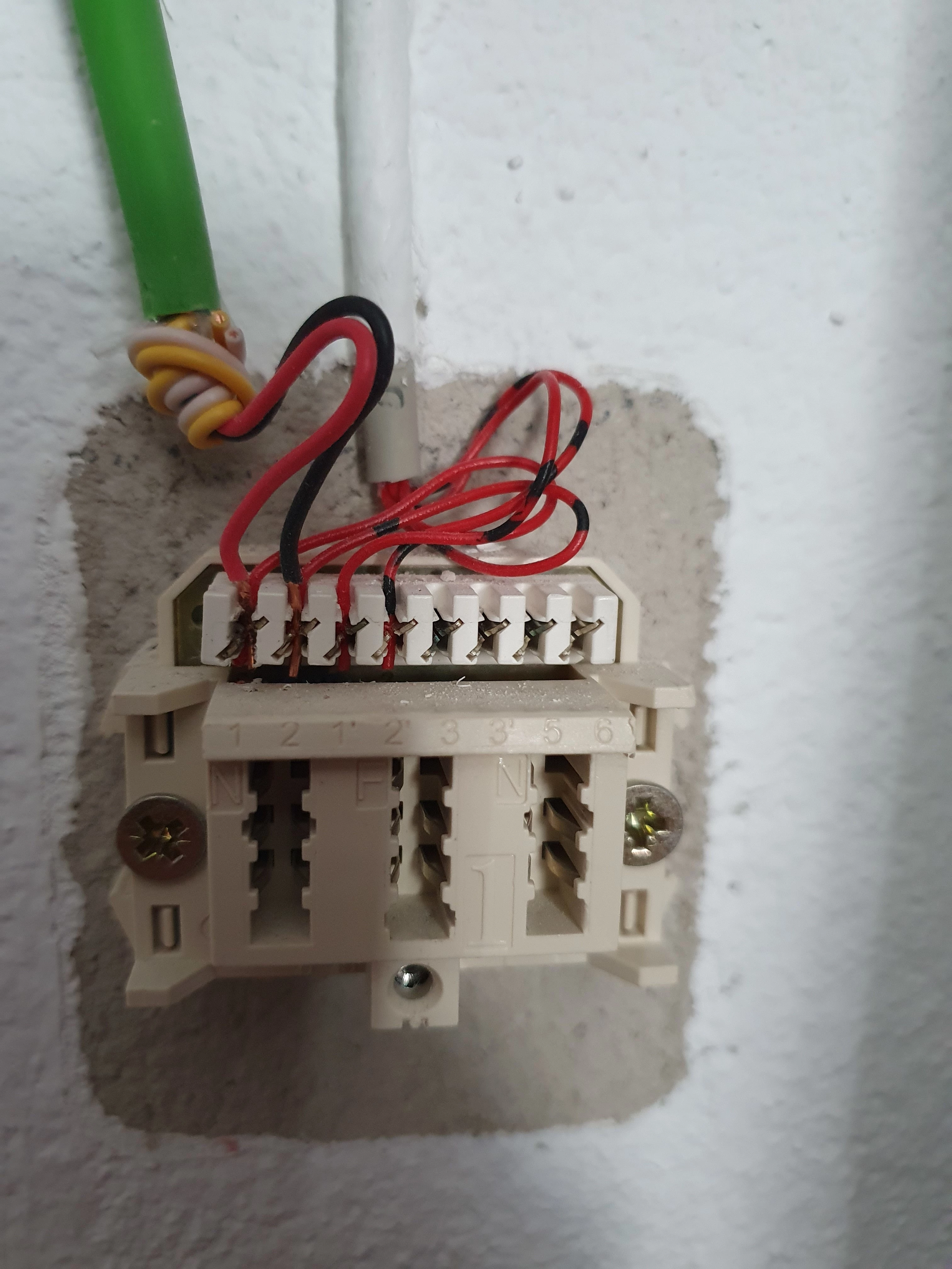 Also das rote Kabel muss dann bei 6, das schwarze bei 5 eingeklemmt werden. Denn 1 wird auf 6 durchgeschleift, 2 auf 5. Anschließend geht 6 bei der neuen Dose auf 1, und 5 auf 2.