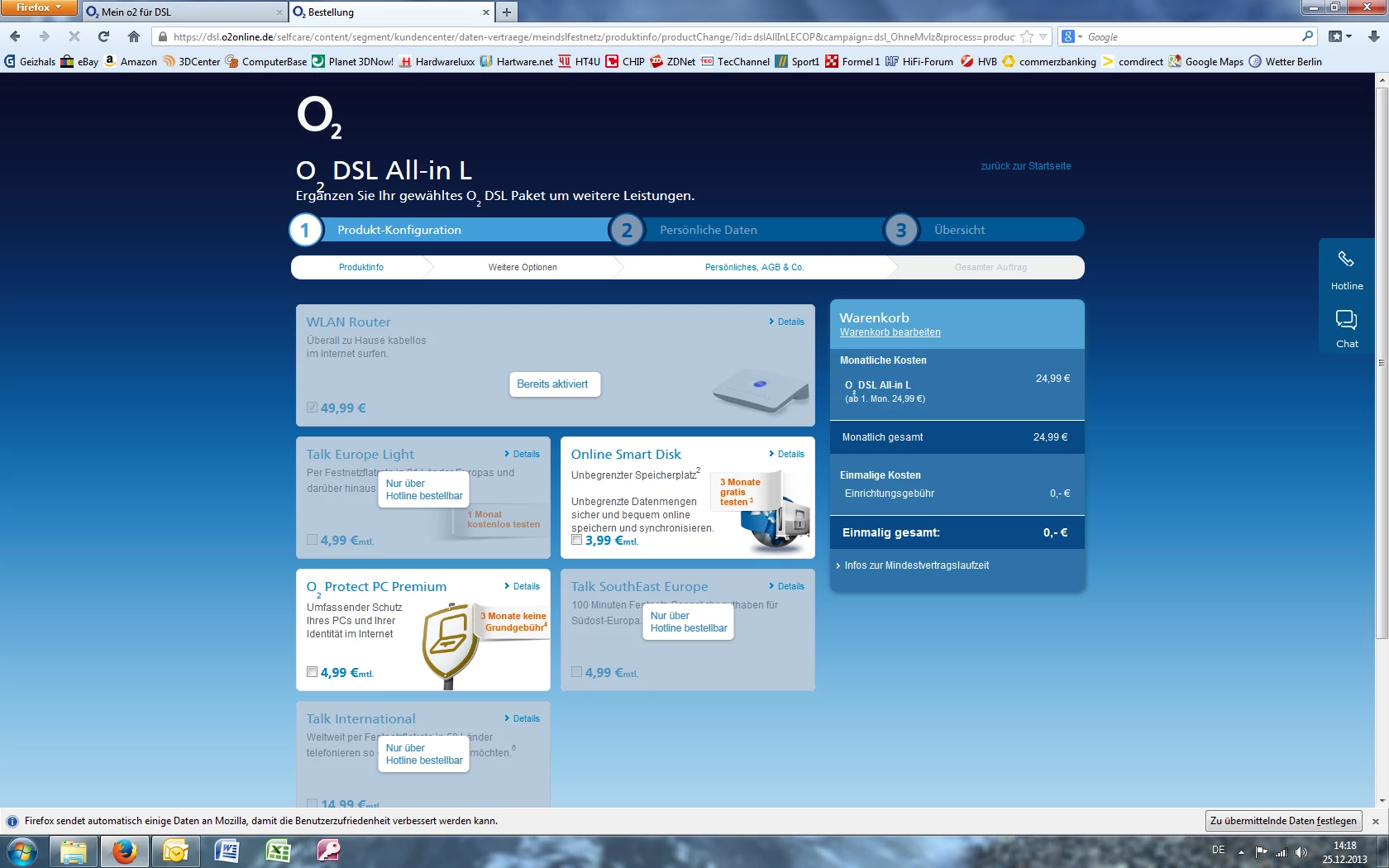Mit alles sehr seltsam meine ich, dass in meinem Fall ein Online Produktwechsel auf All-in L ohne Vertragsbindung kostenlos sein soll, aber bei Buchung der Option Speed sogar Gebühren mitVertragslaufzeit berechnet werden. Technisch gesehen ist ja All-in L identisch zu Option Speed, beides basiert auf VDSL und man erhält den o2 Router 6431. Gut, bei All-in L hat man keine richtige DSL Flatrate, ob das eine Rolle spielt?
