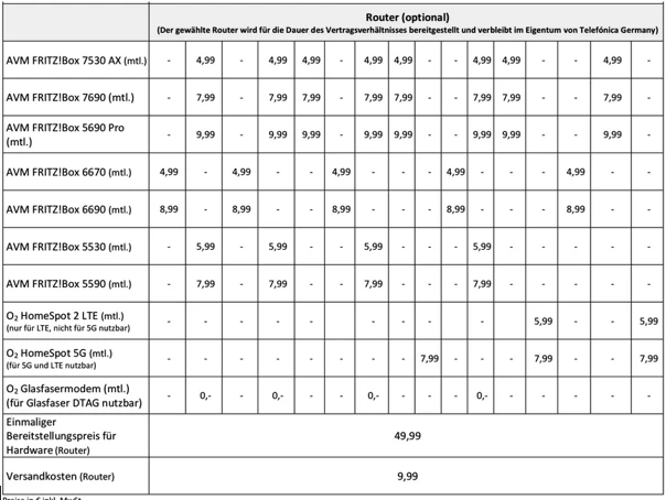 Die Mietpreise für die Router findest du in der Preisliste.