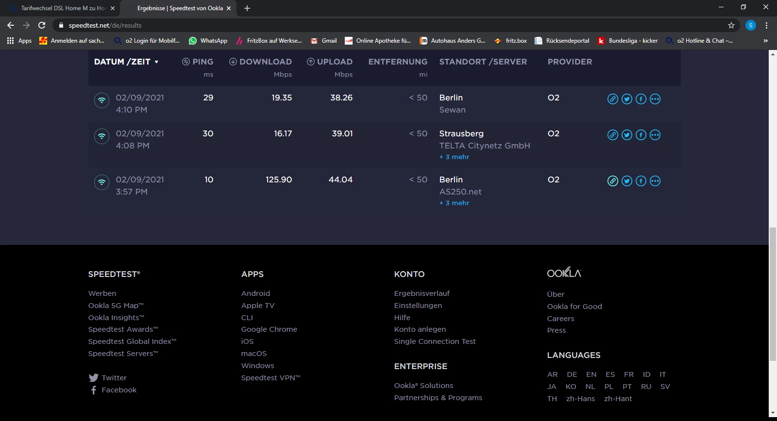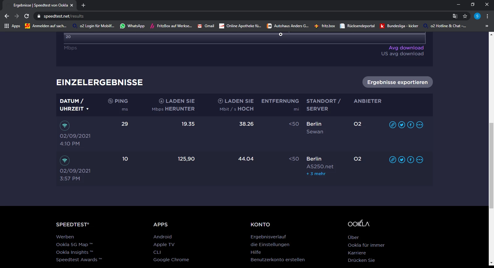 Das ist jetzt kein Speedtest übers Smartphone per WLAN über den 250Mbit Dsl Anschluss.