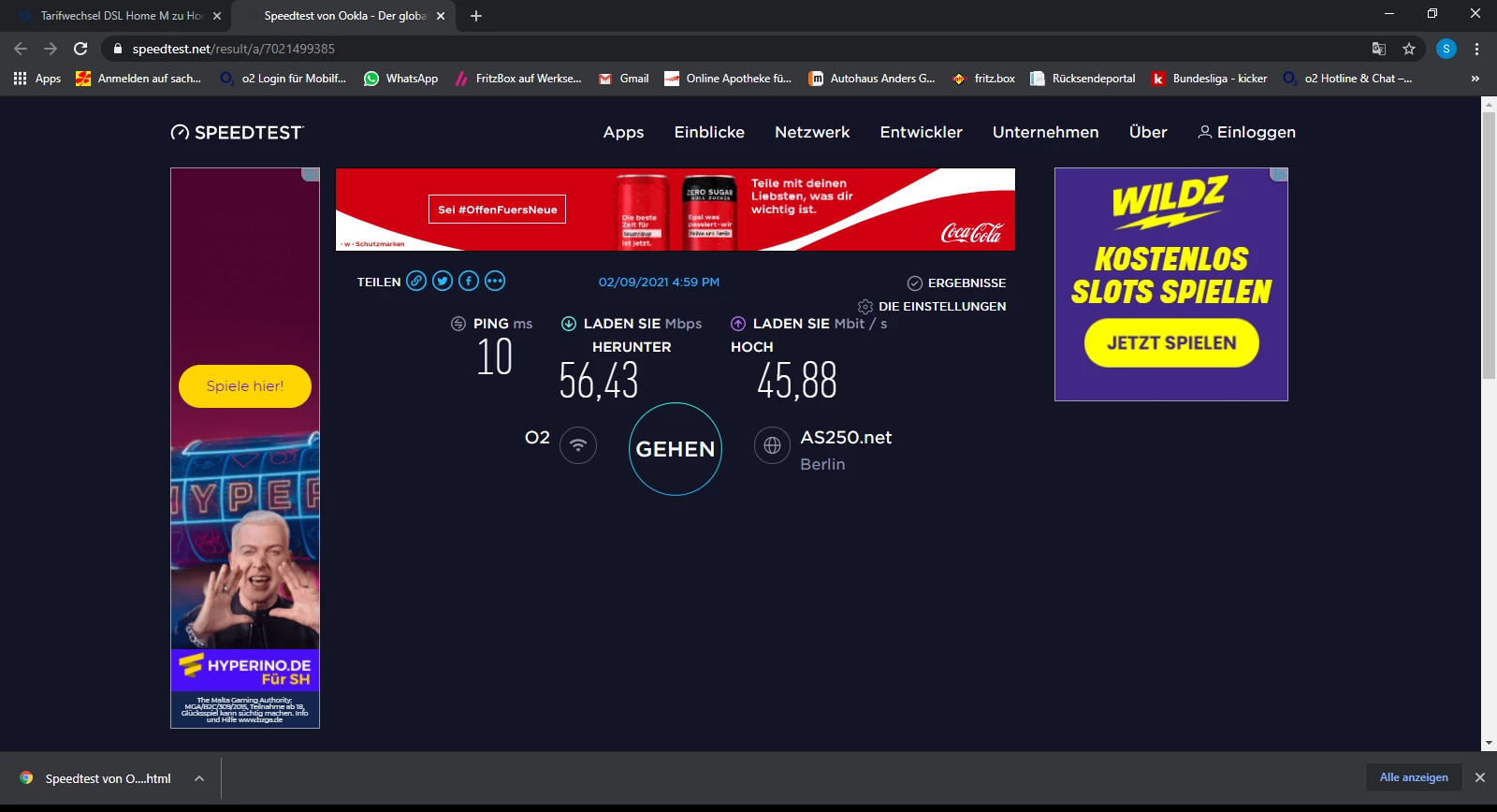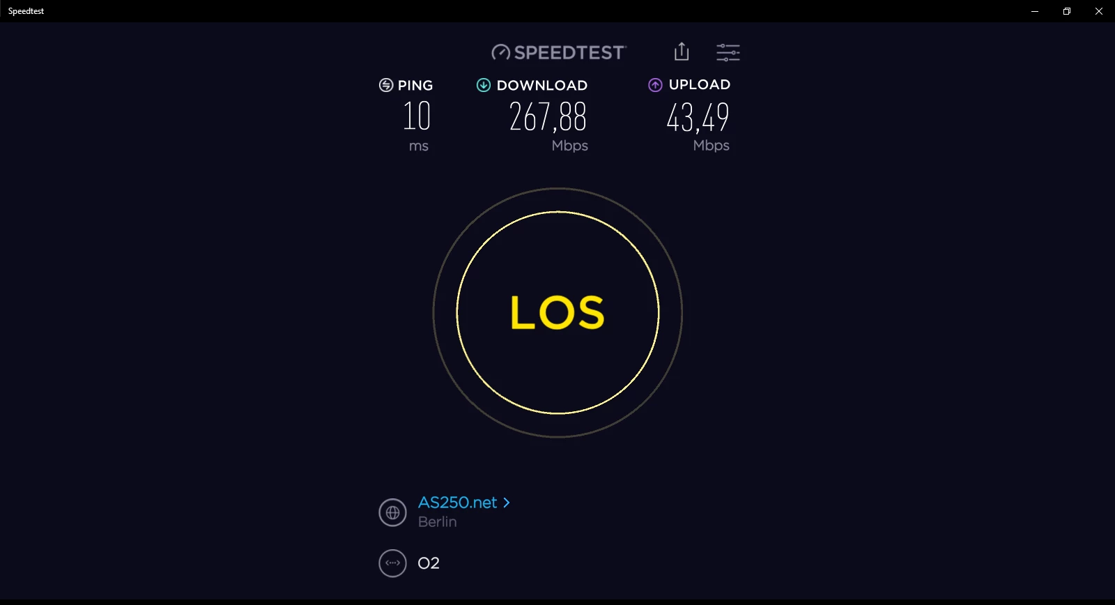 So, erst mals Guten Morgen! Also Speedtest direkt per LAN am Router in der Nacht super.