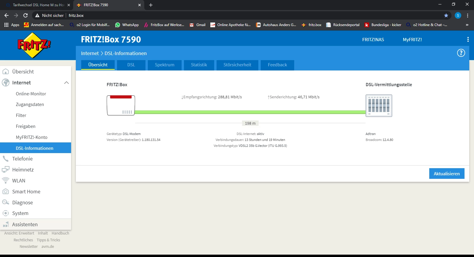 Hallo Larissa, XL Tarif gestern freigeschaltet, nachdem danach auf Fritz Box 7590 wohl bei DSL im Menü 250 angezeigt wurde und ich via Lankabel Breitbandmessung Bundesnetzagentur  machte weil Downloads langsamer waren wie zuvor. Okay, setzte Router in Werkszustand zurück und richtete ihn dann mit o2 neu ein. Routermenü zeigte danach 288MB an aber nungabs häufige Aussetzer beim FritzC6 Telefon. Wieder Breitbandmessung und nur wird's witzig: DSL Download sowie Upload fast identisch gleich. So um die 39 bis 37MBt