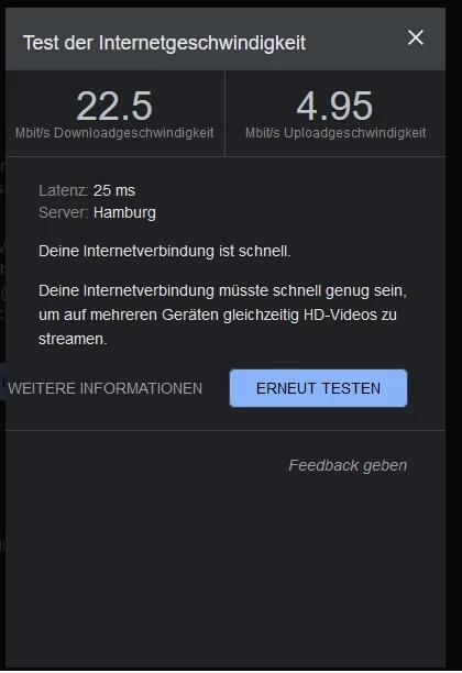 meine Leitung gibt nur 25 mbit her wobei der O2 my Home M bis zu 50 mbit hat