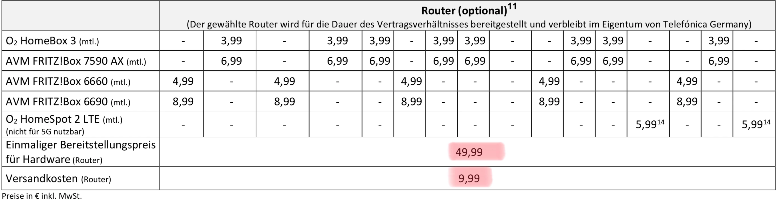 Bei Bedarf kann auch nachträglich noch ein zum Anschluss passender Mietrouter bei o2 zu den Preisen gemäß Preisliste beauftragt werden.
