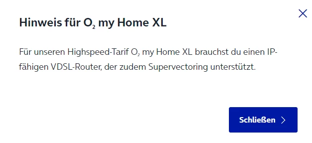 Auf der o2 Webseite gibt es keinen “Verbindungstest”. Die Verfügbarkeitsprüfung ist vor allem für DSL-Neukunden gedacht und denen werden auch selbstverständlich nur zum Tarif passende Router angeboten. Zudem ist beim 250 Mbit/s Tarif folgender Hinweis zu lesen:
