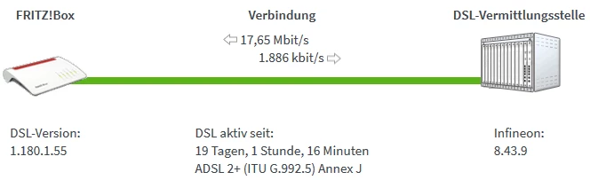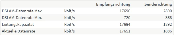 hmm, guter Hinweis… der Sync sieht nach ADSL2+ aus: