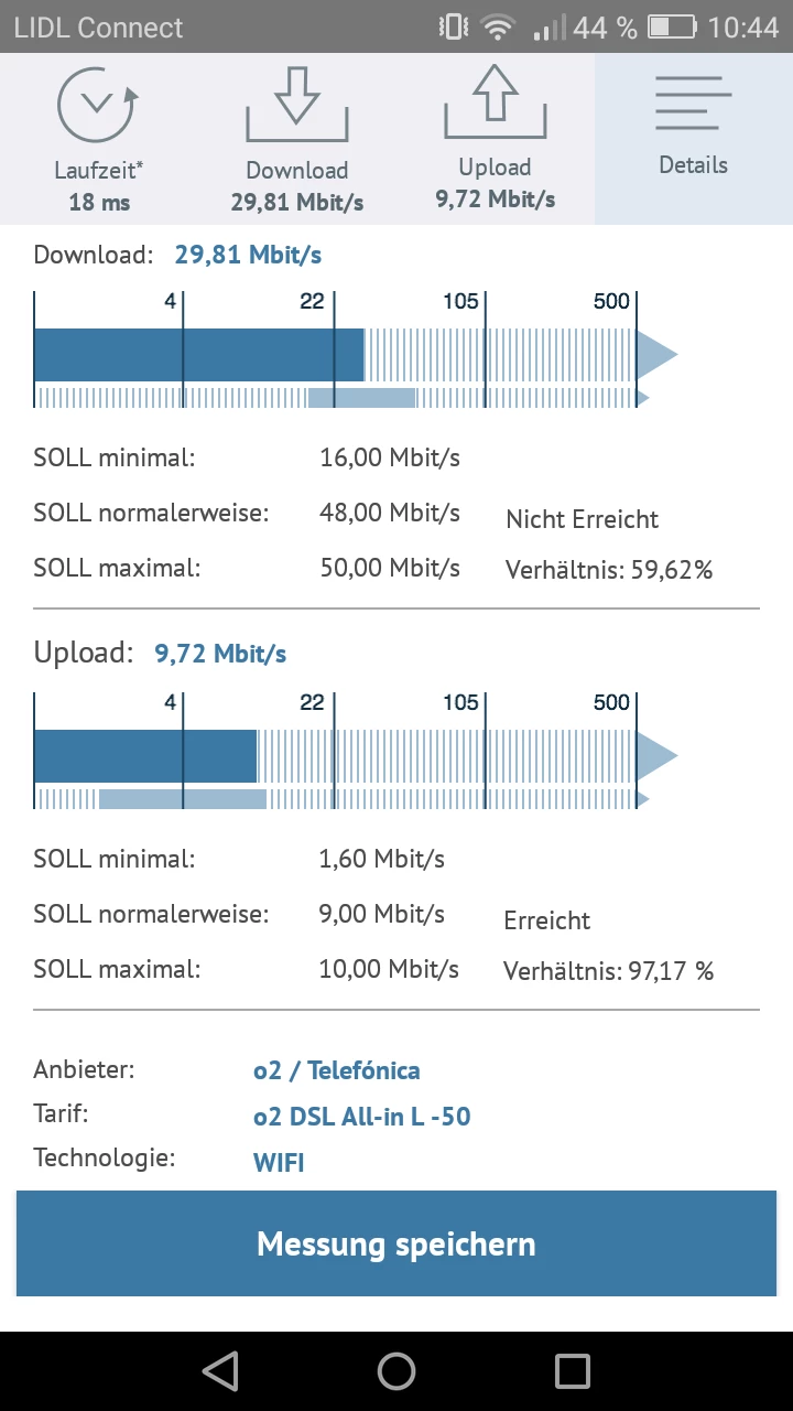 @matterhorn4478 installiere bitte als App mal Speedtest von Ookla und mache damit ein, zweimal den Test.