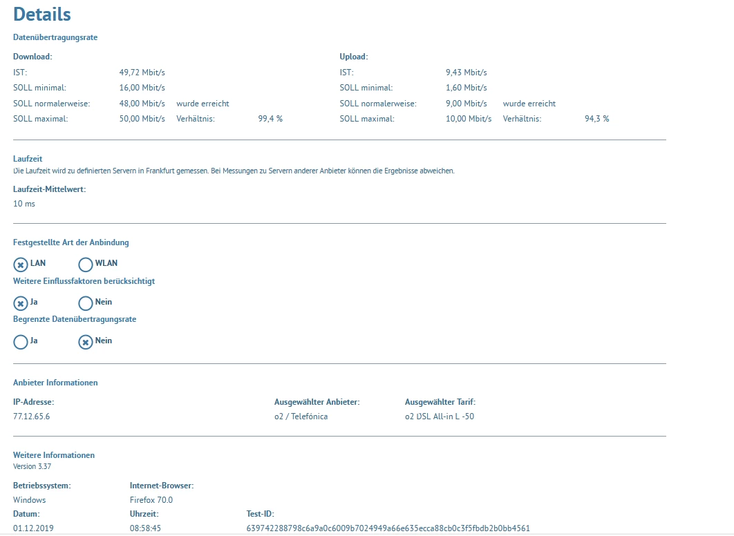 @matterhorn4478 was für einen Router hast Du? Vom Upload (10MBit) ist das ein VDSL 50MBit Anschluss. Bitte andere Speedtests durchführen und das Ergebnis hier posten.