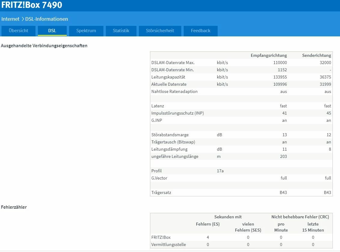 Danke. Hier sicherheitshalber noch ein Screenshot mit der Verbindung zum DSLAM: