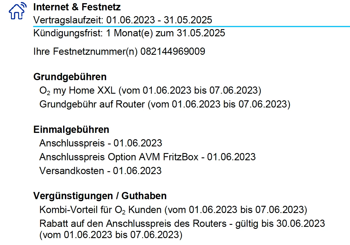 Ich nutze die O2-Dienste schon seit langem und habe kürzlich ein Abonnement für O2 Home abgeschlossen. Bei der Vertragsunterzeichnung erhielt ich die Information, dass ich eine Technologierückerstattung erhalte. Aber nachdem ich den Vertrag unterzeichnet hatte, erhielt ich den Vertrag per Post und in diesem Vertrag fehlt Technology Rebatt. Als ich bei o2 Shot nachgefragt habe, schlugen sie vor, dass der Rabatt berechnet wird, sobald die Verbindung hergestellt ist. Kann ich dem vertrauen? Ansonsten ist es möglich, den Vertrag innerhalb des ersten Monats zu kündigen?