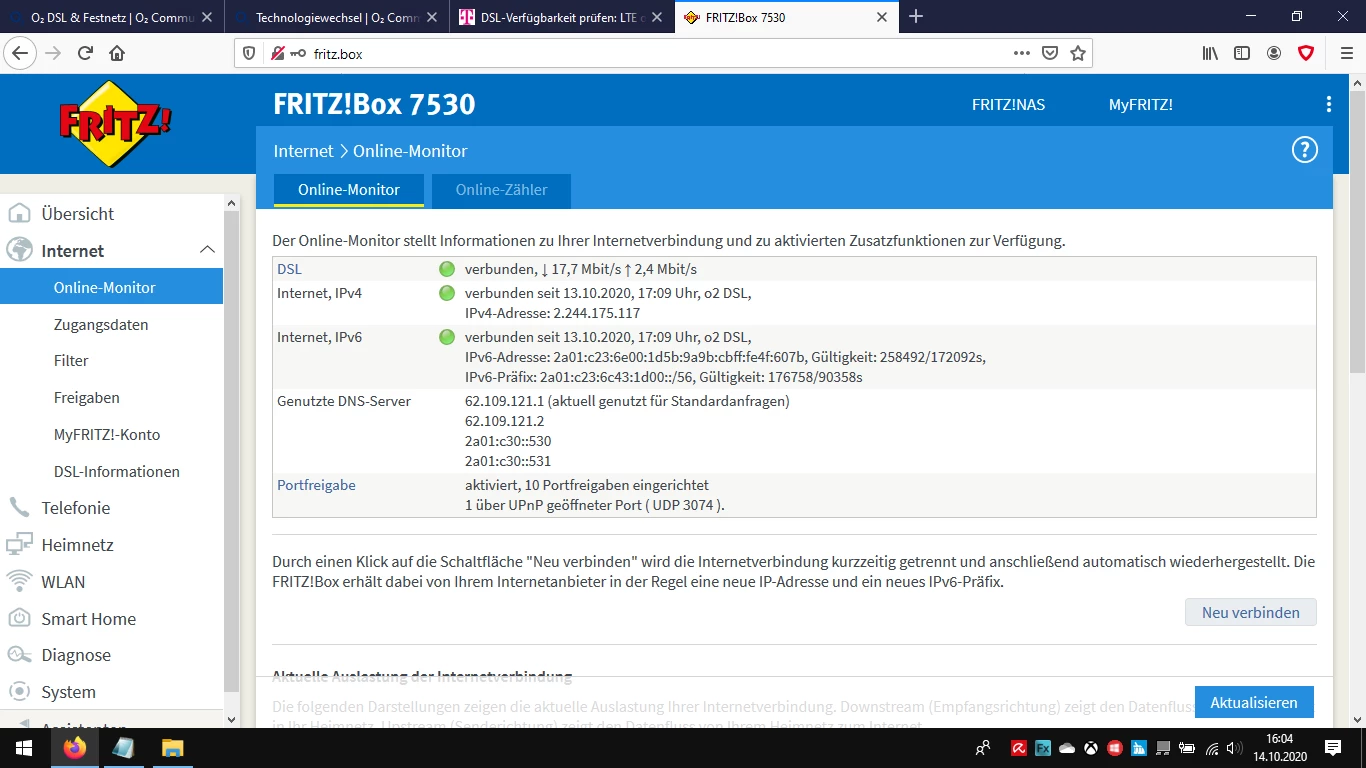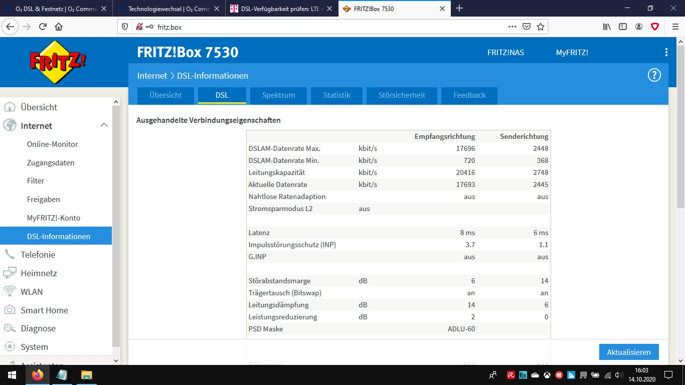 Mach bitte mal einen Screenshot deiner Leitungsdaten.