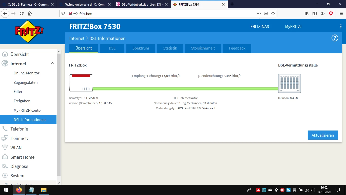 Seit dem 24.11.17 habe ich den O2 DSL S 25.000 (ca.17.700 Download und 2.400 Upload laut FritzBox 7530) Vertrag für ca. 30€.