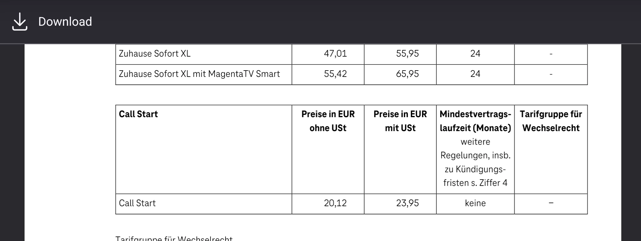 die Telekom-PL anschaue, gibt's da nur noch den Call Start und der kostet mittlerweile auch 23,95€ monatlich…