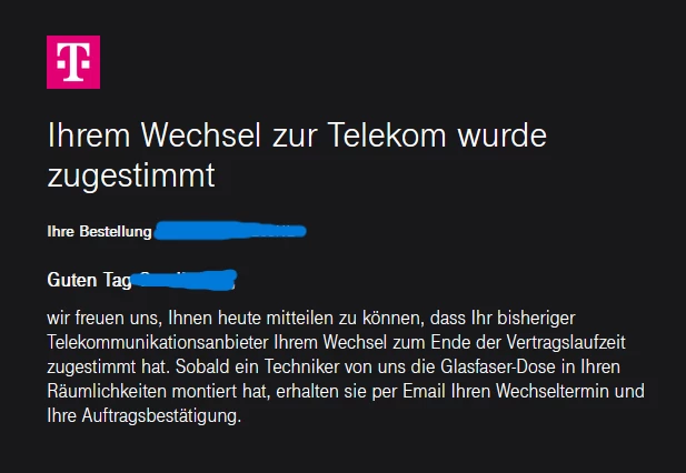Als in unserem Hochhaus Glasfaser angeschlossen wurde und ich bei der Telekom einen Vertrag abgeschlossen hatte, haben diese mir versichert das Telefonica dem Anbieterwechsel zugestimmt hat. Jedoch habe ich jetzt trotzdem einen Glasfaser-Vertrag mit beiden Anbietern und Kündigen kann ich auch nicht. Ich bedanke mich im Voraus für alle antworten.