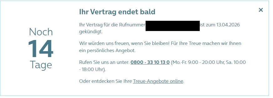 Allerdings sind wir kein Live-Medium und bei der kurzen Restlaufzeit bis zur Kündigung ist ein Anruf in der Tat sinnvoller, denn bei o2 Home Vertragsverlängerungen wird meist eine gewisse Vorlaufzeit benötigt.