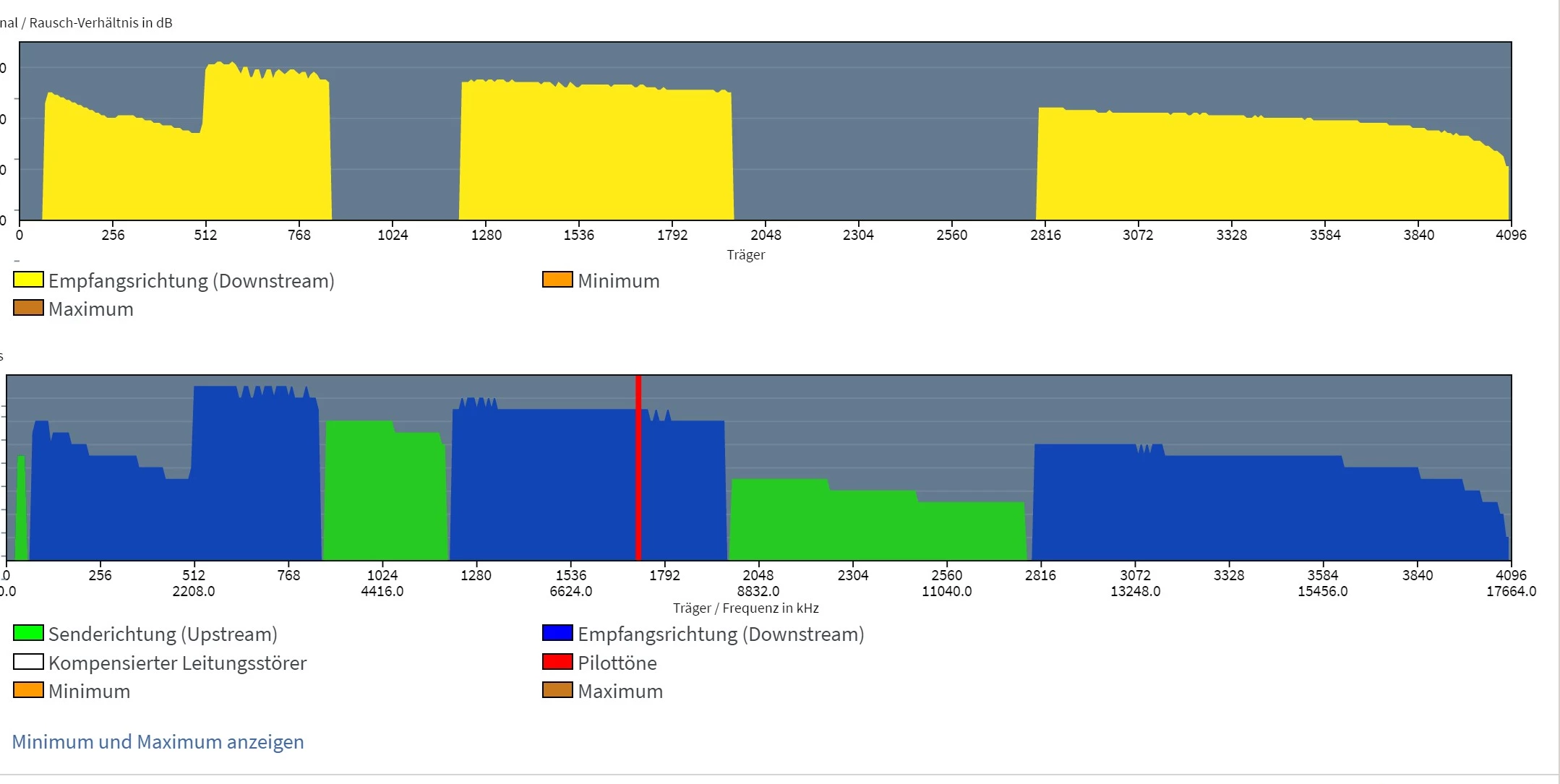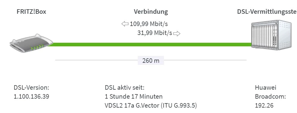 Oder sind die angezeigten Werte, die Werte am Verteilerkasten? - Warum zeigt mir dann das DSL-Tool ebenfalls folgende Ansicht?