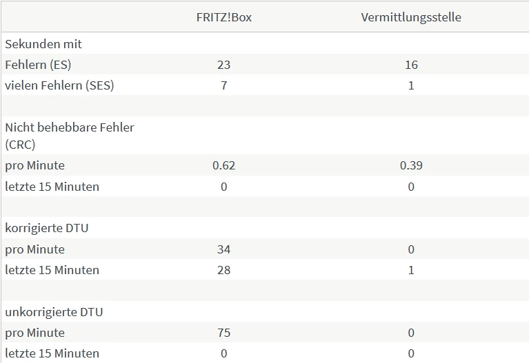 Die Störsicherheitseinstellungen der Fritzbox sind mittlerweile auf dem Maximum, da die Leitung sonst zeitweise garnicht mehr nutzbar ist, trotzdem hab ich am Tag mindestens eine Neusynchronisation der Leitung und dauerhaft Fehler..