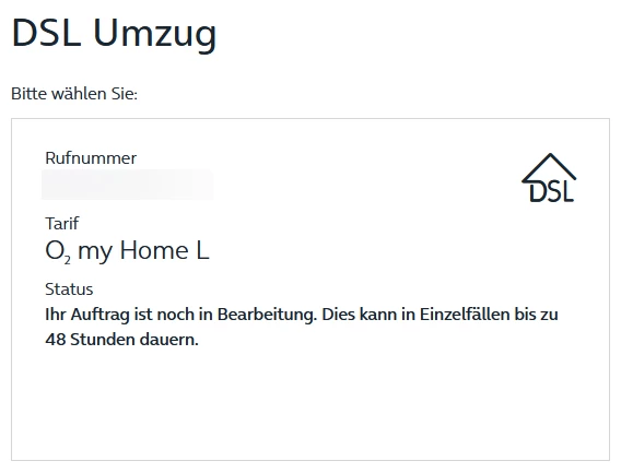 Umzug des DSL Anschlusses nicht möglich, da ein Auftrag noch in Bearbeitung