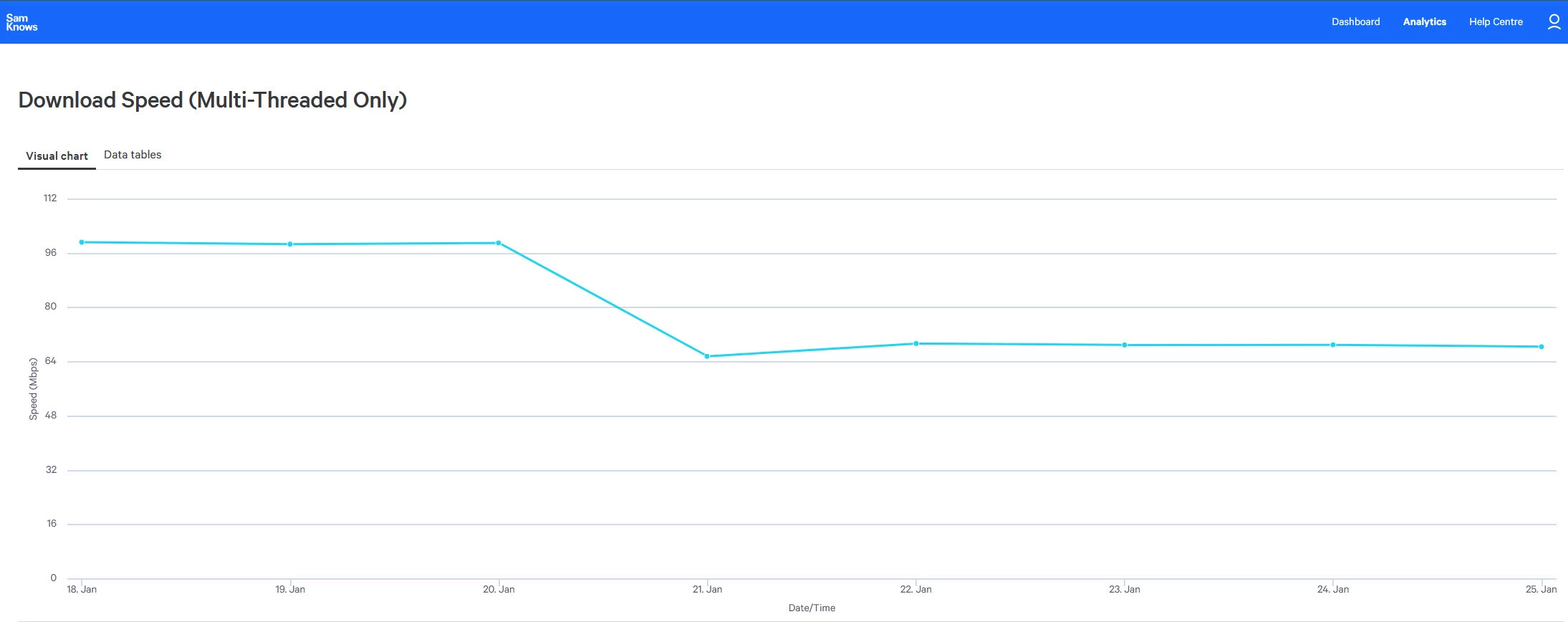 es sind einige Abbrüche auf der Leitung ersichtlich, damit würde ich dir raten dass du dich nochmal an die Kollegen der Technik wendest. Das es hier immer wieder zu Abbrüchen kommt kann dann auch einen Einfluss auf die Performance haben.