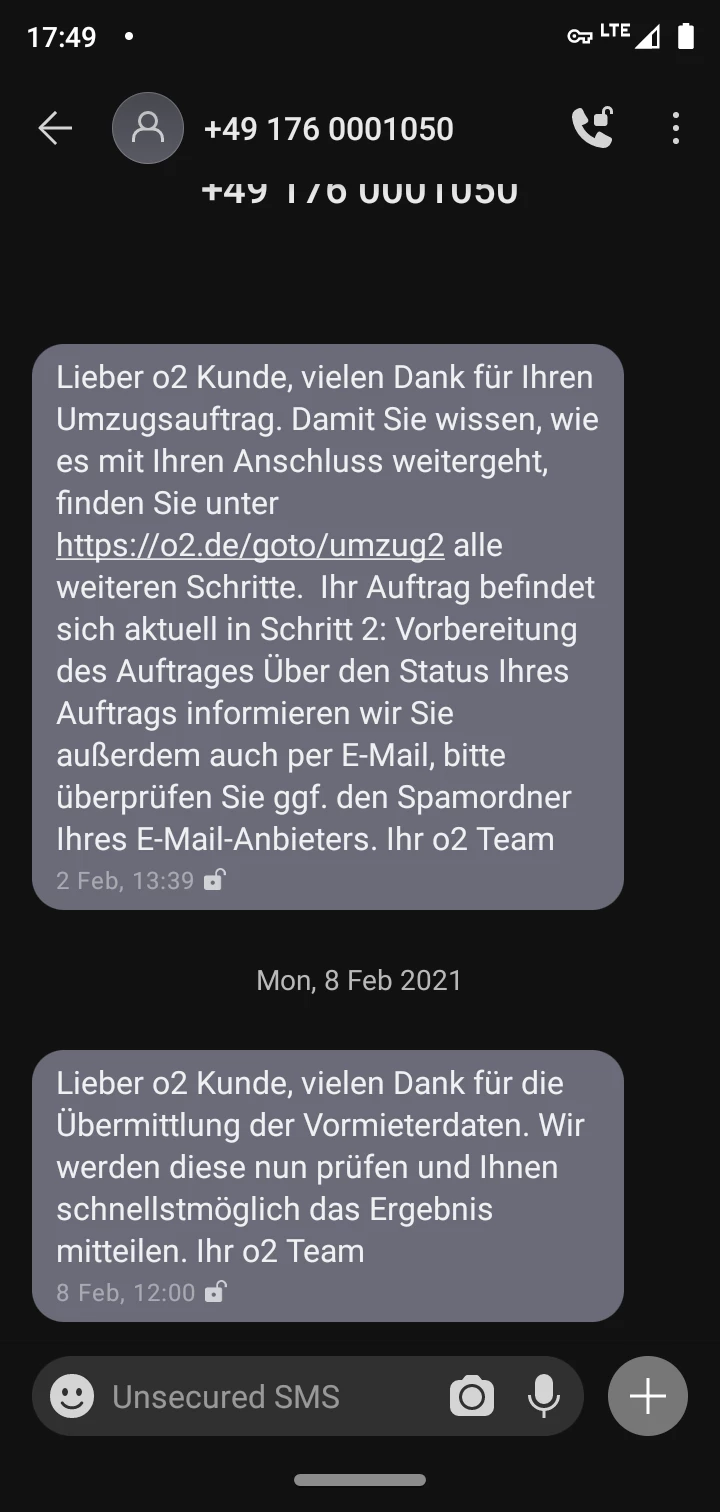 Der Clue: natürlich hatte ich den Namen der Vormieterin an O2 übermittelt.