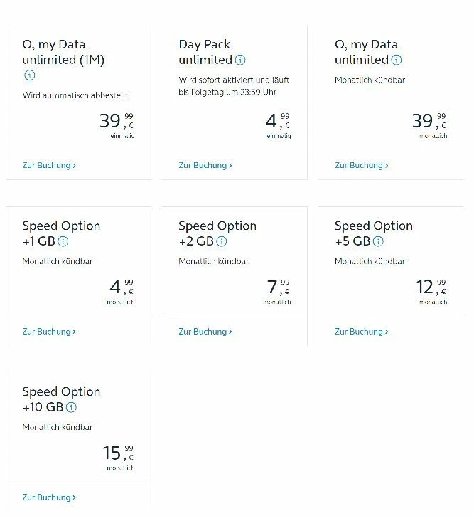Danke, das wäre als Überganglösung so OK-”ish”. Leider sehe ich die kostenlosen Packs auf meinem Portal nicht. Beide Verträge zeigen nur die üblichen Optionen ( auch die O2 Handy App )