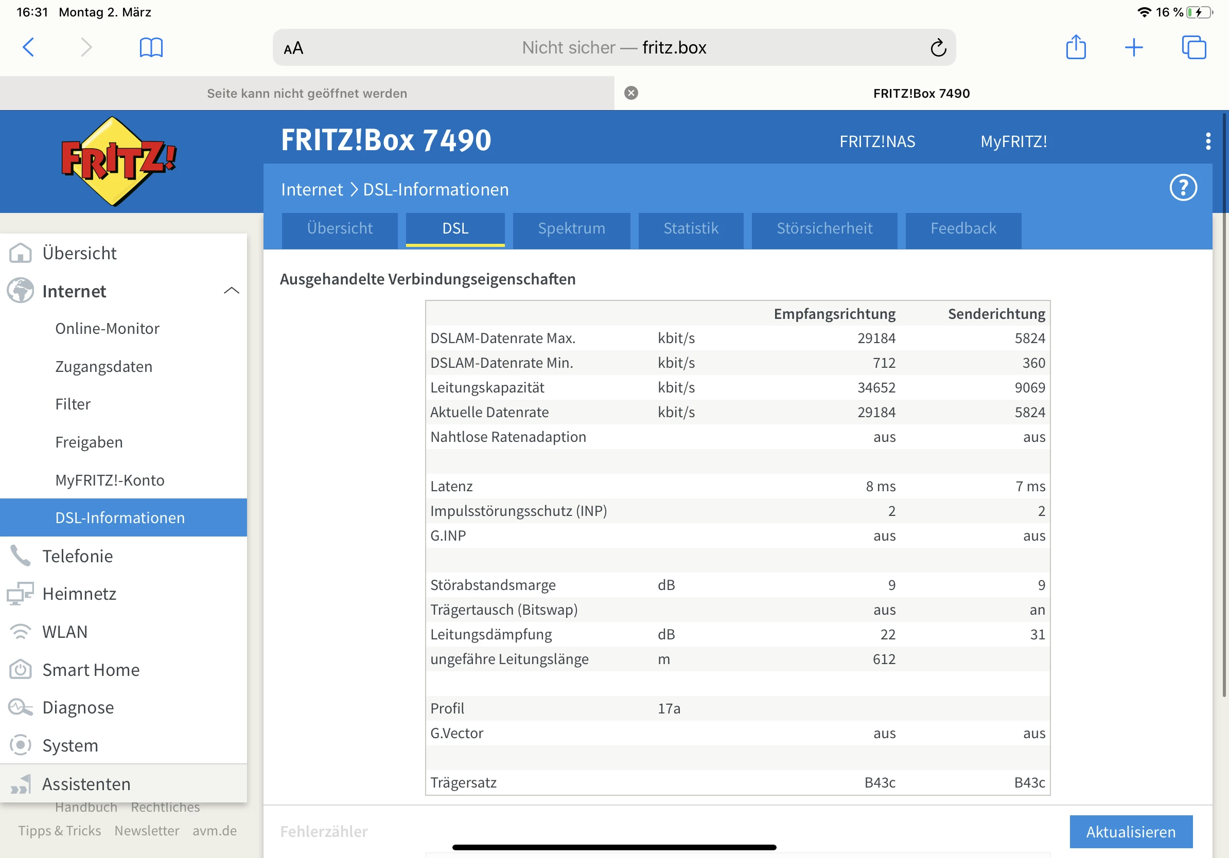 Kennt jemand so ein Profil? Ich hatte jahrelang nur 25,4 weil die Leitung zu schlecht ist.