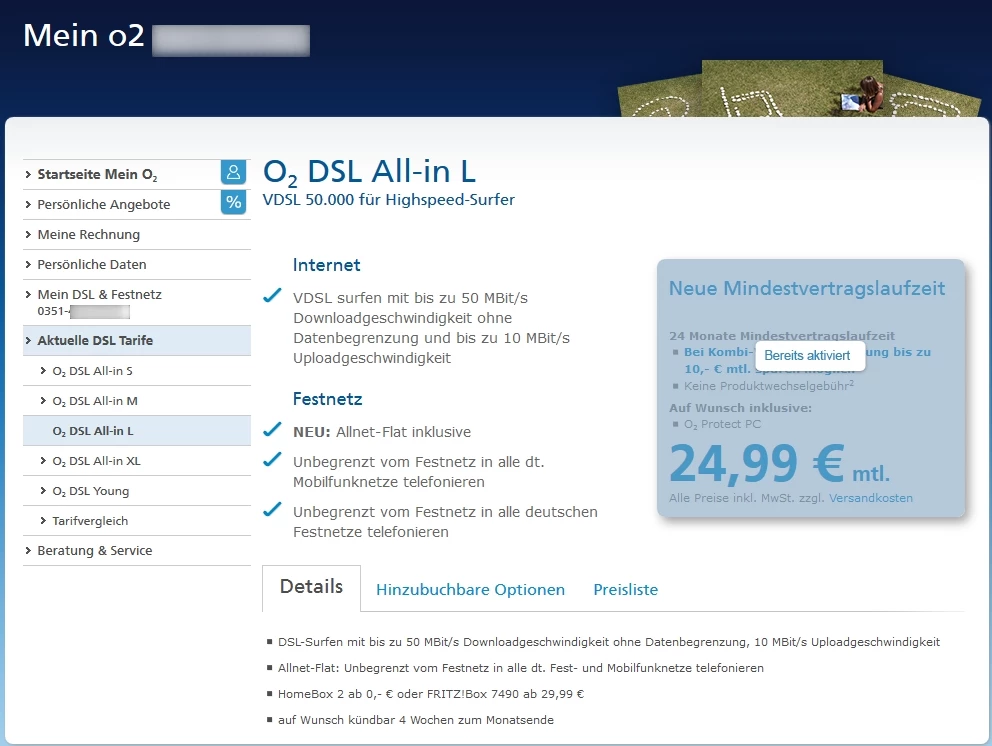 Inzwischen steht beim All-in M 50.000 MBit/s, beim All-in L 50 MBit/s, bei erstem DSL, bei zweitem VDSL.