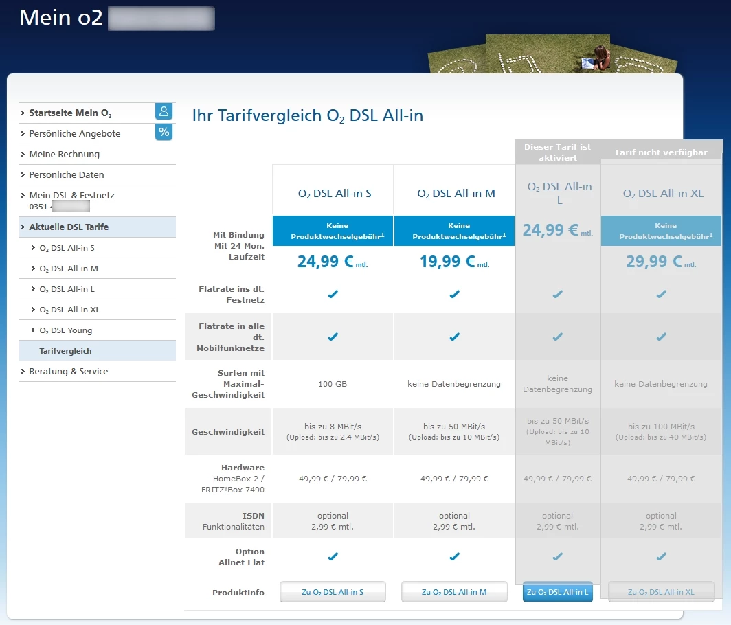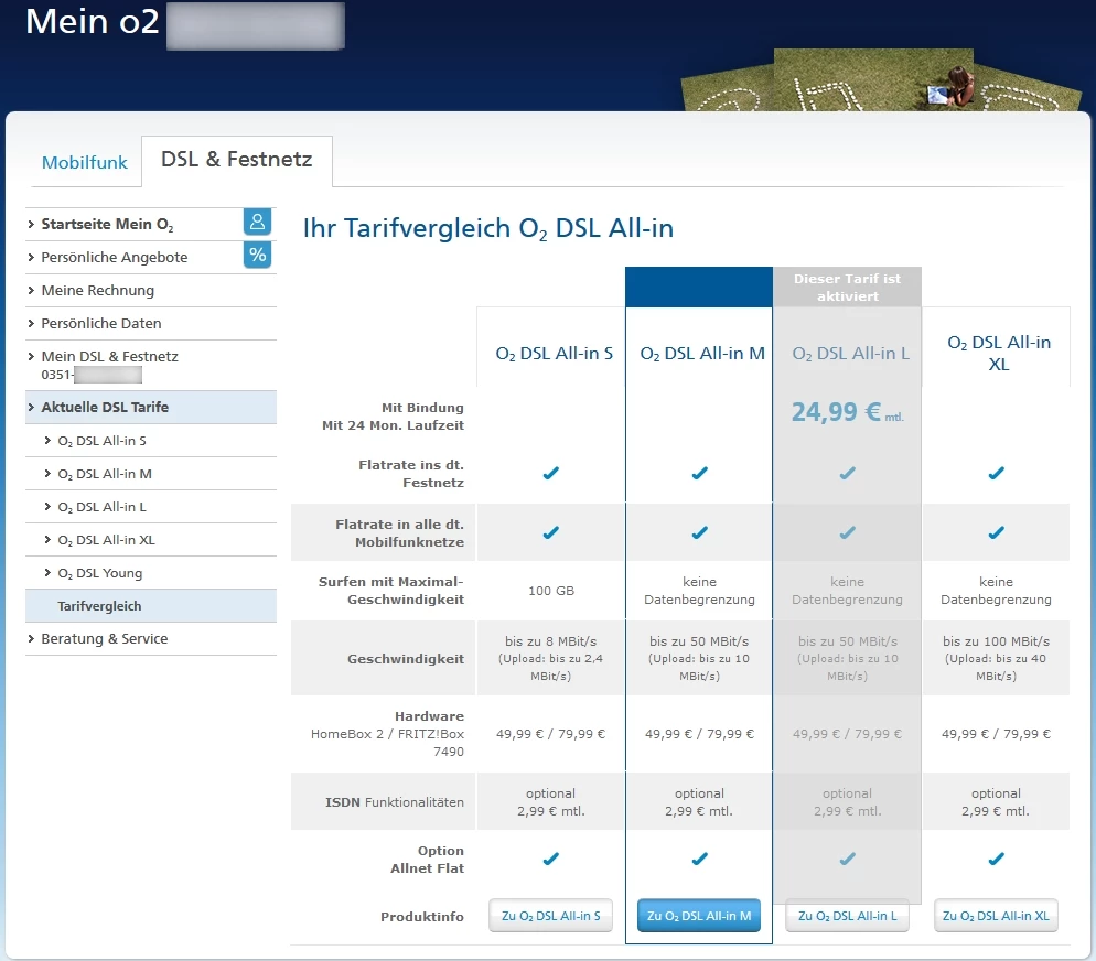 bis auf die Tatsache, das der All-In M zwar im Kopf mit VDSL, im Body aber mit DSL beworben wird und die Tatsache, dass der All-In L 5 Euro teurer ist? Werde ich hier als Bestandskunde (mal wieder) über den Nuckel gezogen?Wofür bitte zahle ich 5 Euro mehr als ein All-In M Kunde?