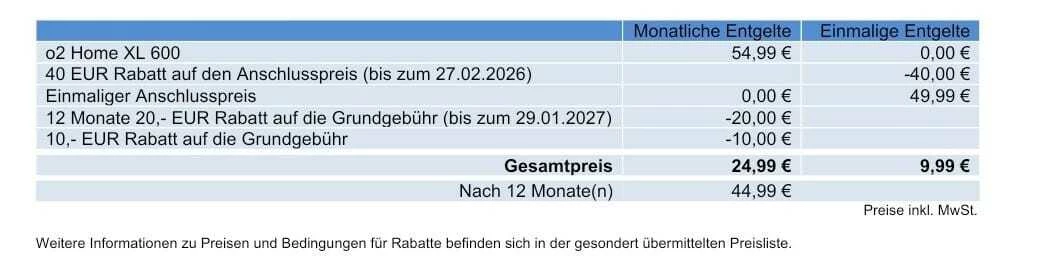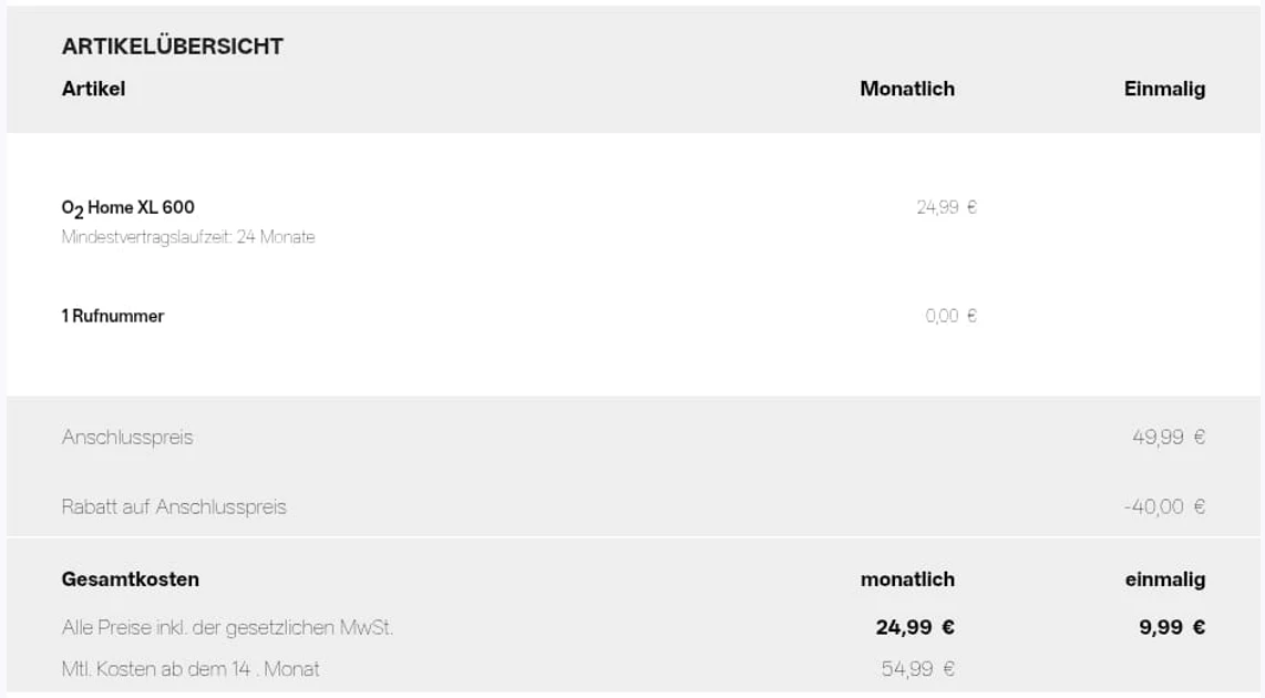 ich habe einen Vertrag für O2 Home XL 600 abgeschlossen. In der Vertragszusammenfassung vor dem Bestellen, wurde der Preis nach dem 12. Monat mit 44,99 € betitelt.